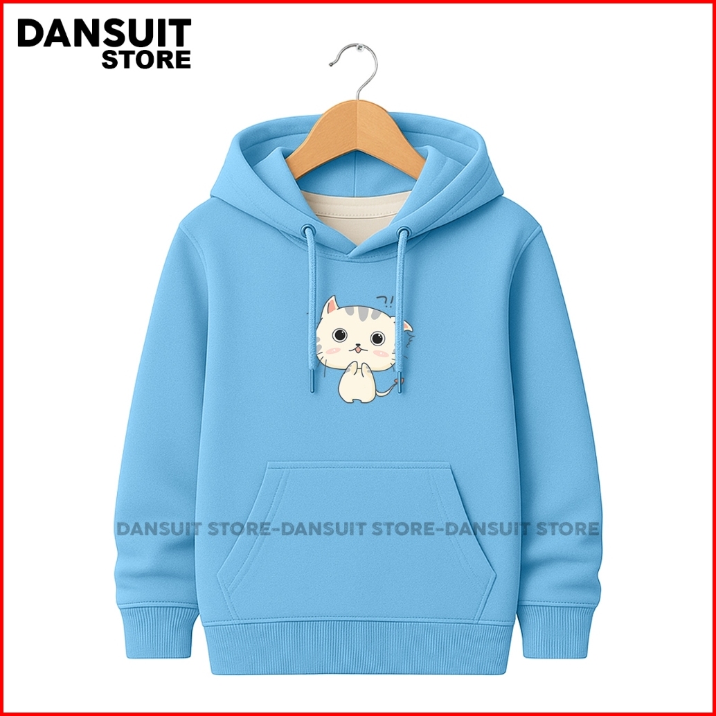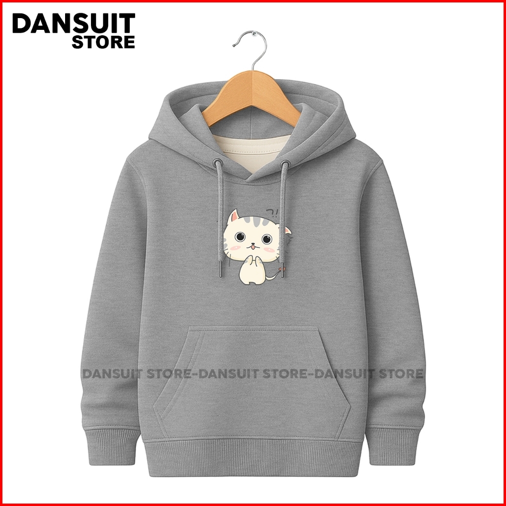 Sweater Hoodie Anak Perempuan Umur 4-14 Tahun Motif Sablon Cute Cat Bahan Tebal Premium