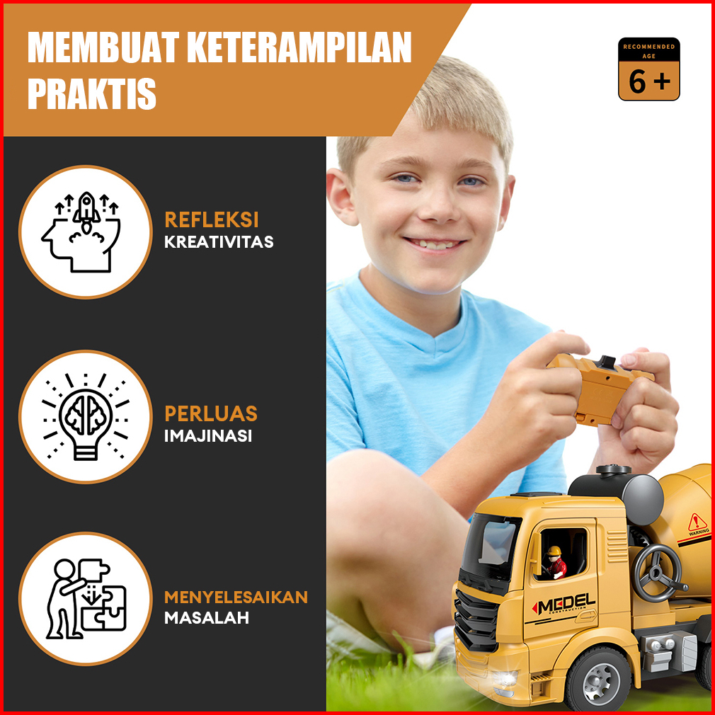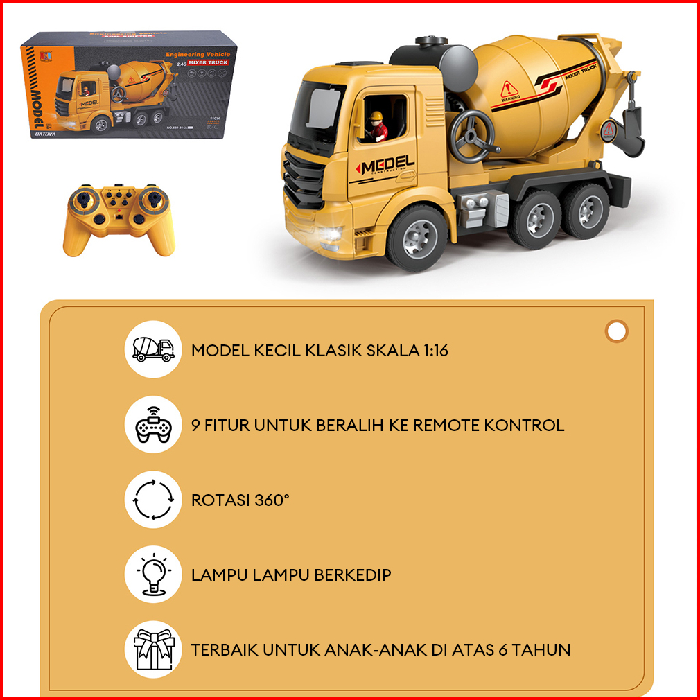 Tatajoy Mixer Truck Remote Control 2.4ghz Konstruksi Mainan 11 Channel Mainan Alat Berat Mixertruck Rc
