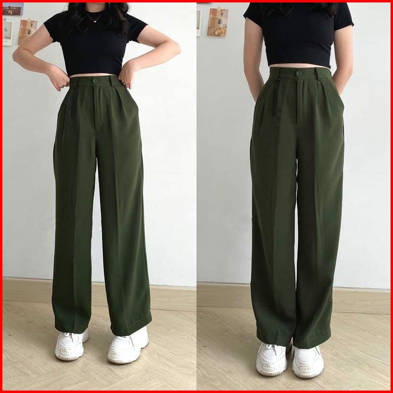 Loose Pants Trousers Wanita - Celana Kulot Wanita Highwaist - Celana Anti Kusut - Celana Wanita - Celana Kerja - Kulot P