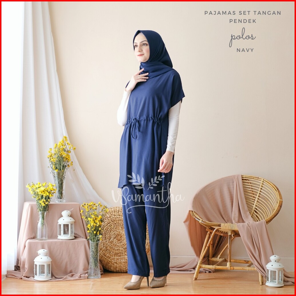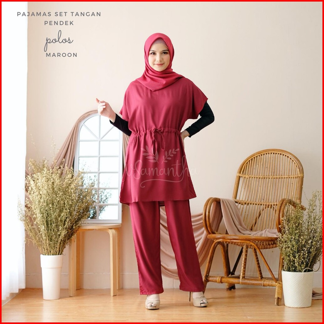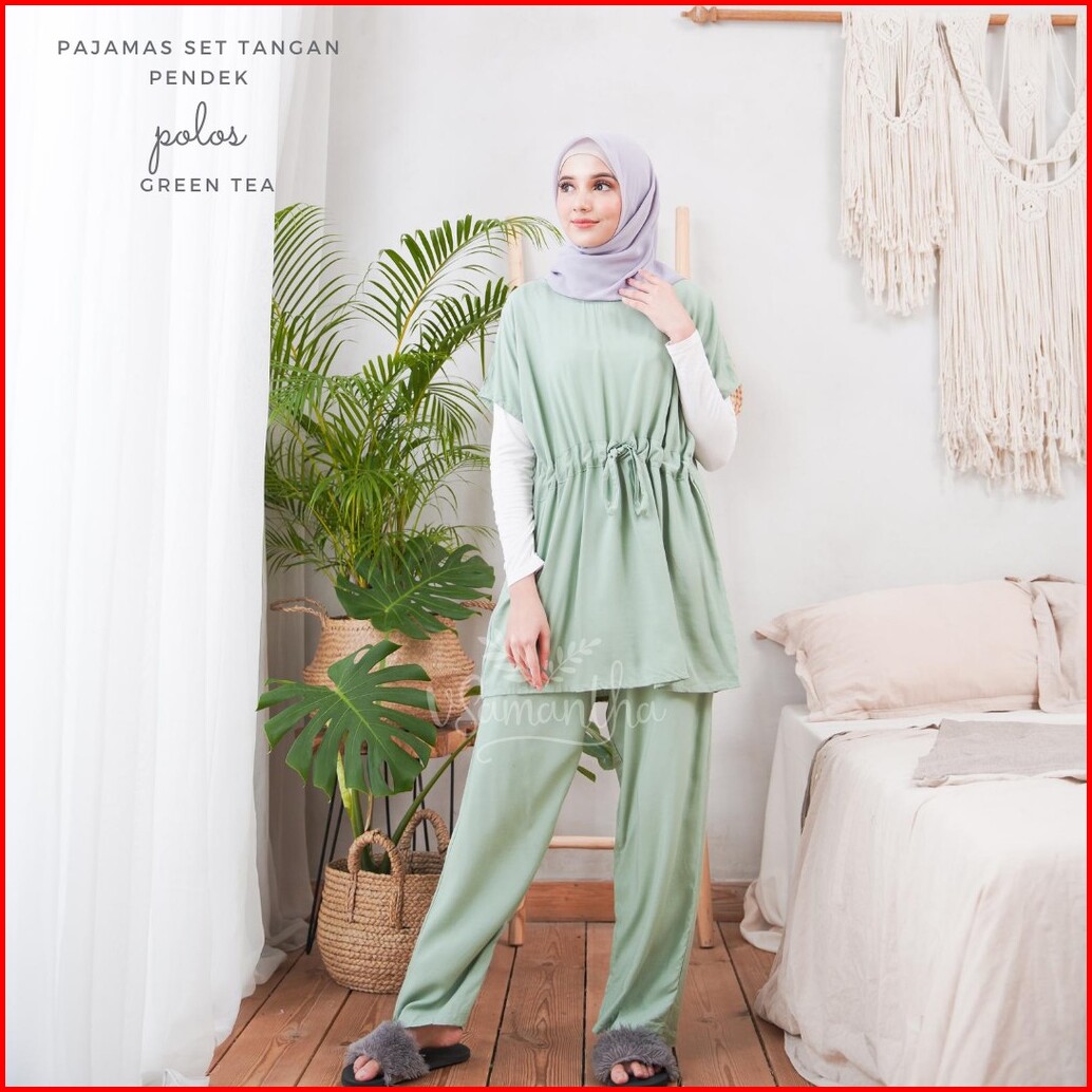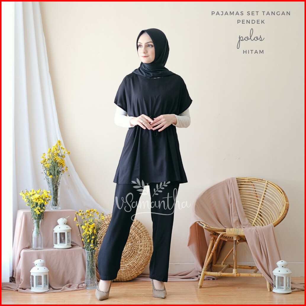 Vsamantha - Pajamas Set Rayon Polos Tangan Pendek Celana Panjang