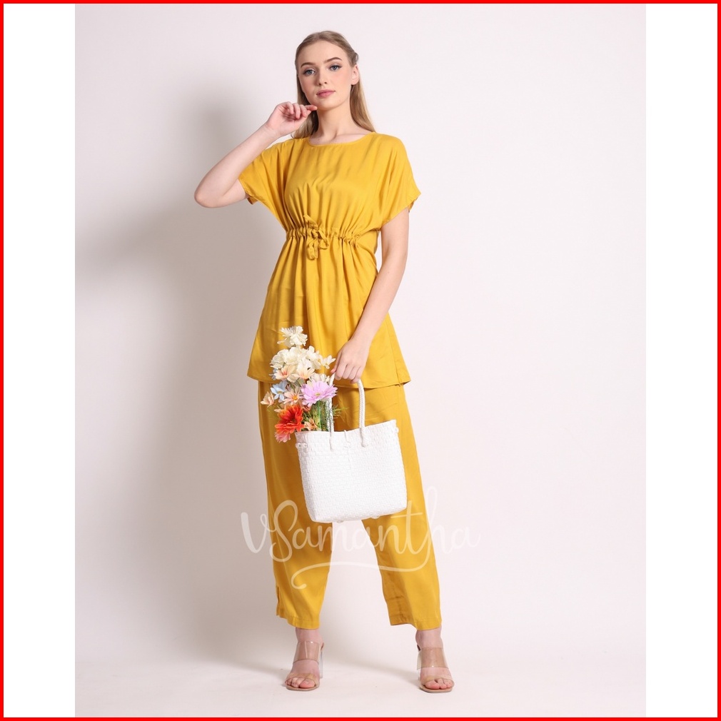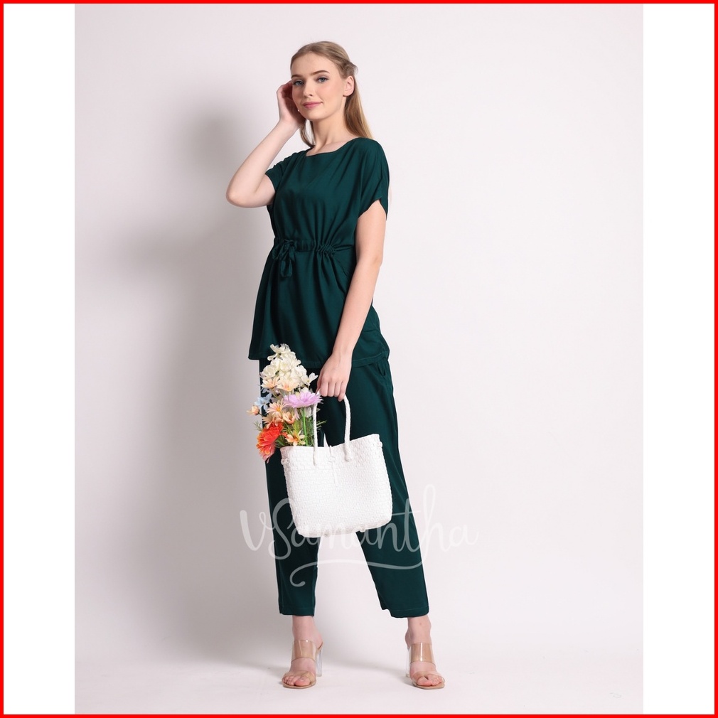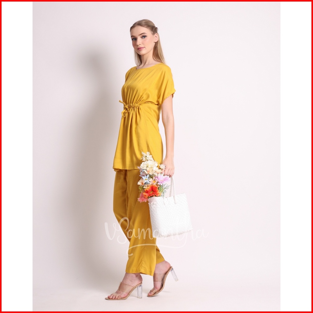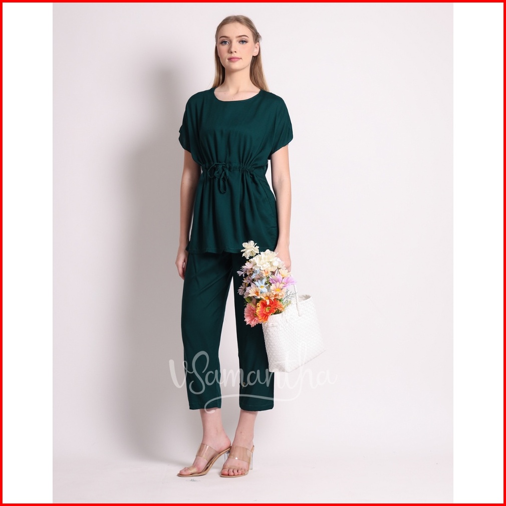 Vsamantha - Pajamas Set Rayon Polos Tangan Pendek Celana Panjang