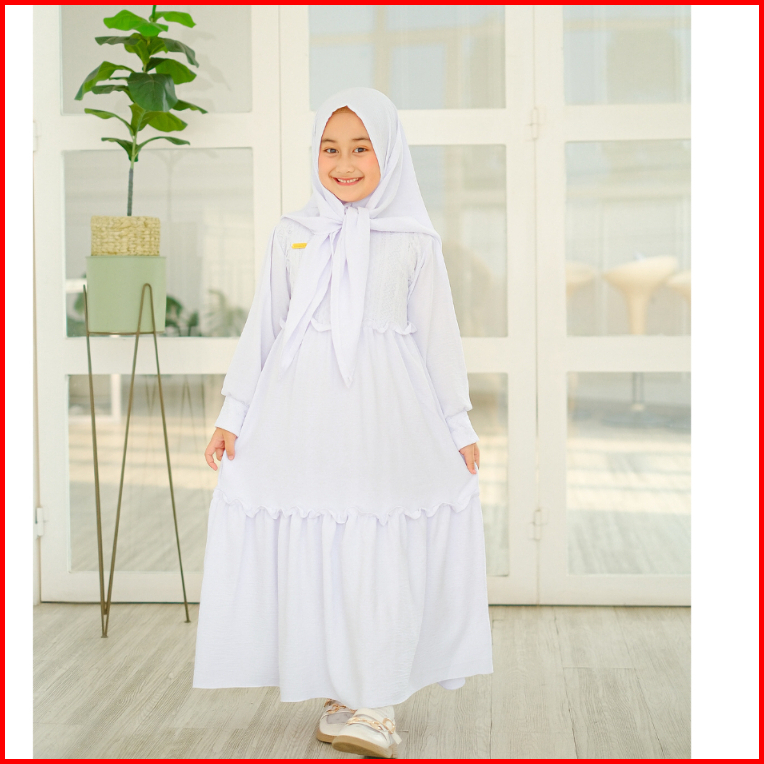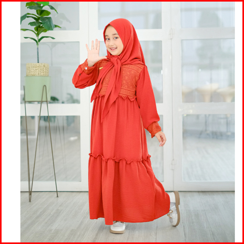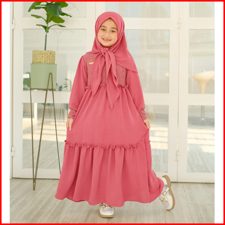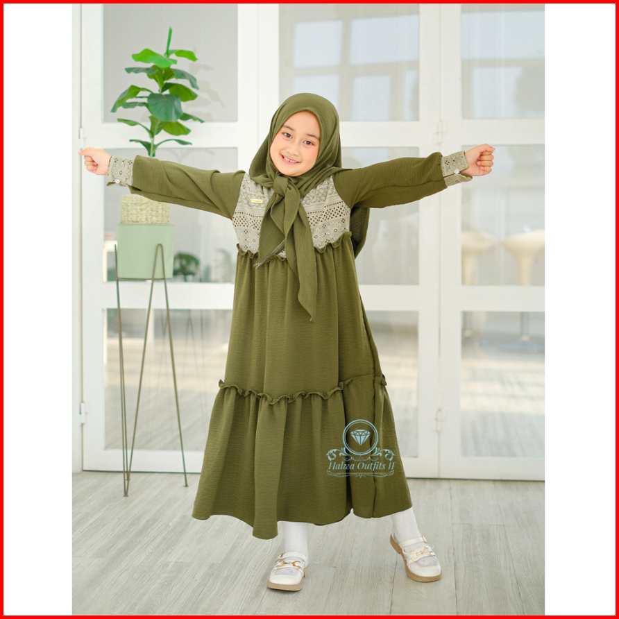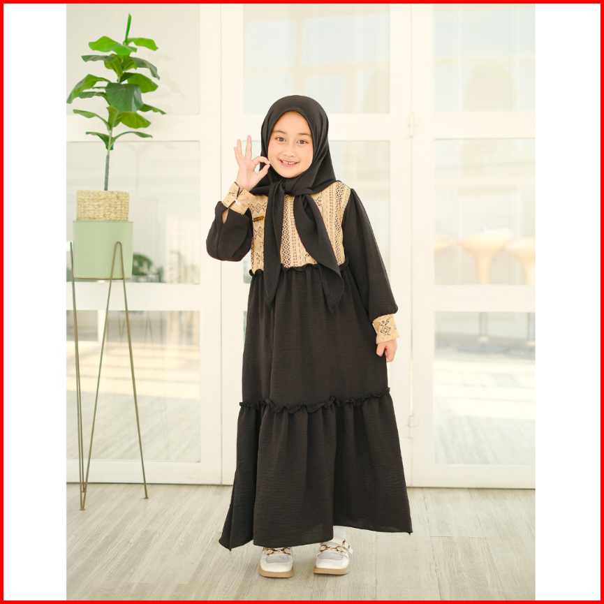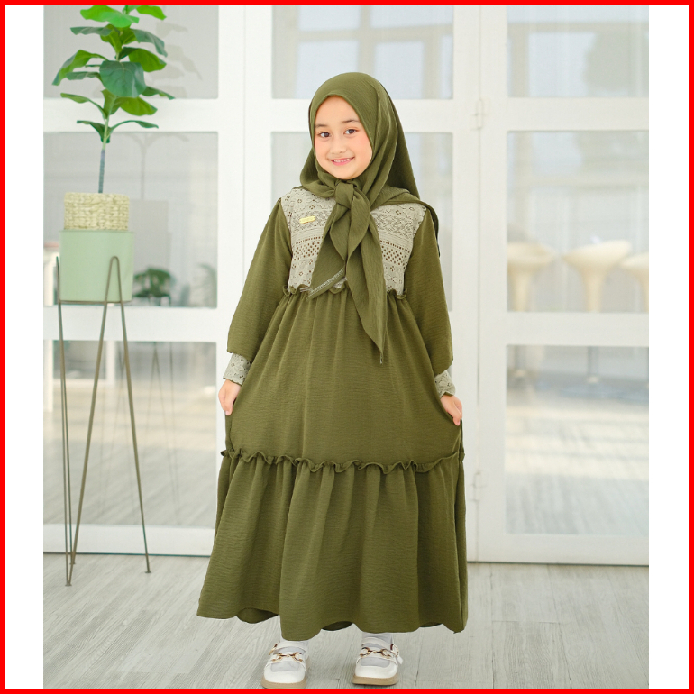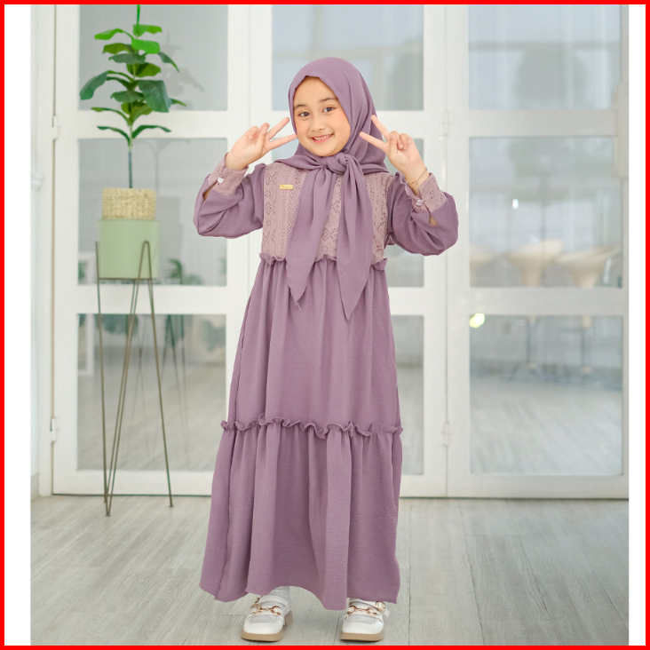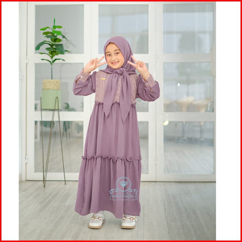 Baju Gamis Anak Perempuan Aleta Dress Bahan Cringkle Hq Mix Brukat Free Jilbab Segitiga