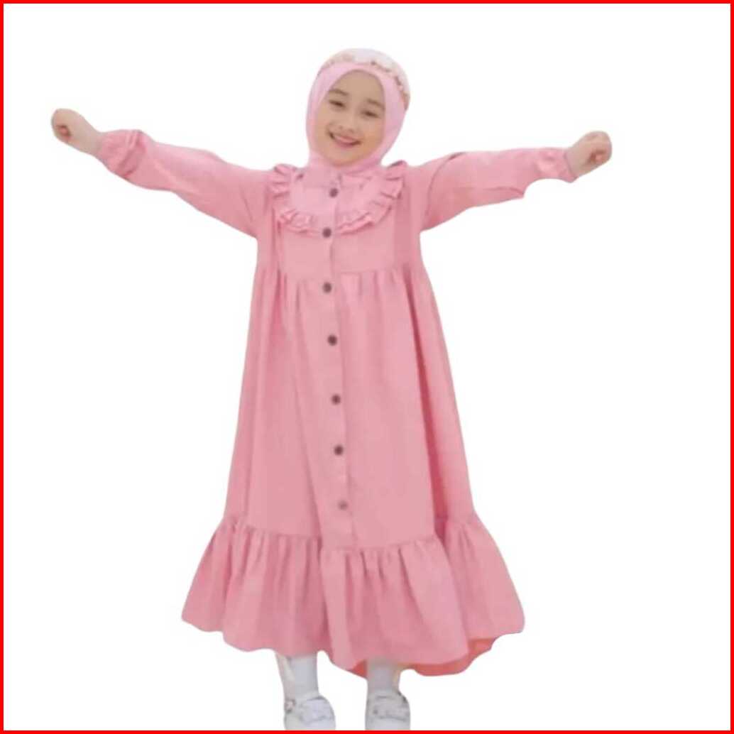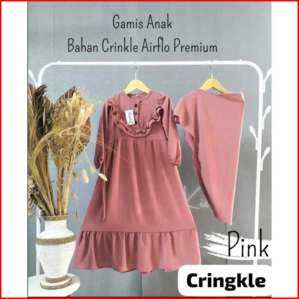 Gamis Anak Cringkle Plus Hijab Usia 4 Sampai 10 Tahun Dress Set Hijab Terbaru 2023 2024