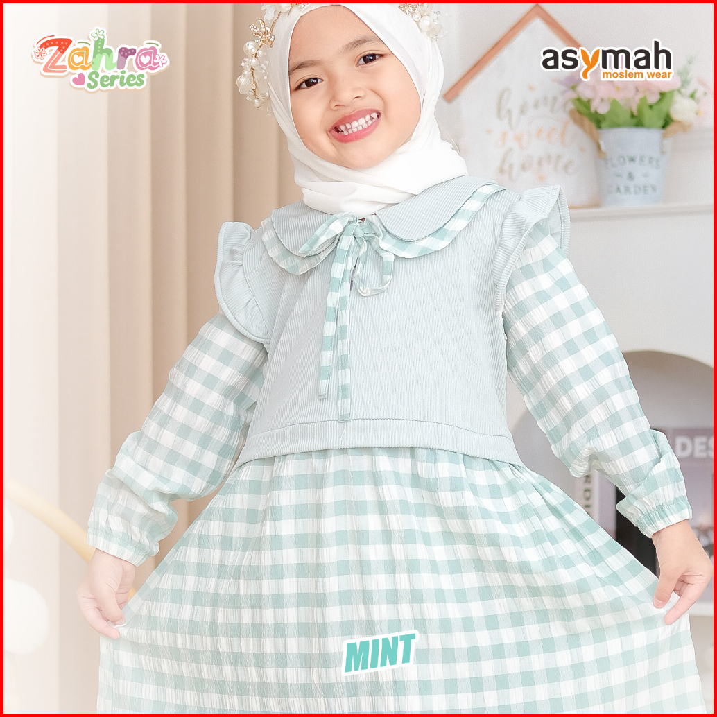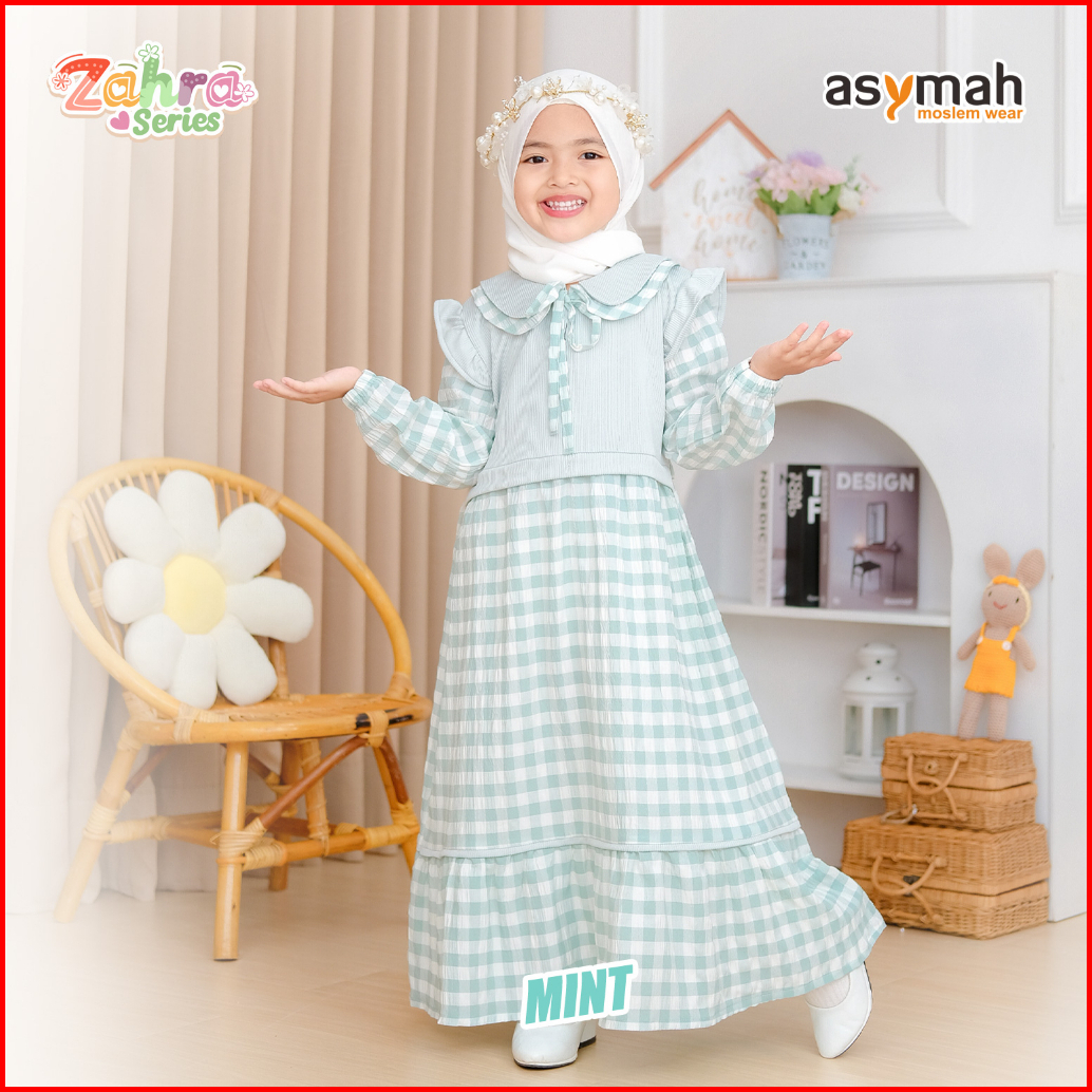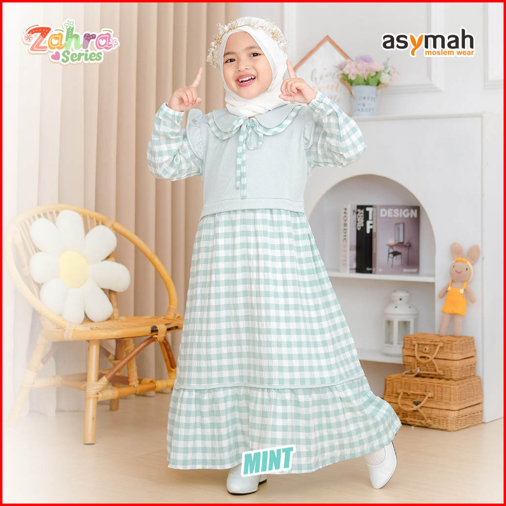 - Gamis Anak Bahan Arumi Crinkle Zahra Series V2 Warna Mint By Asymah