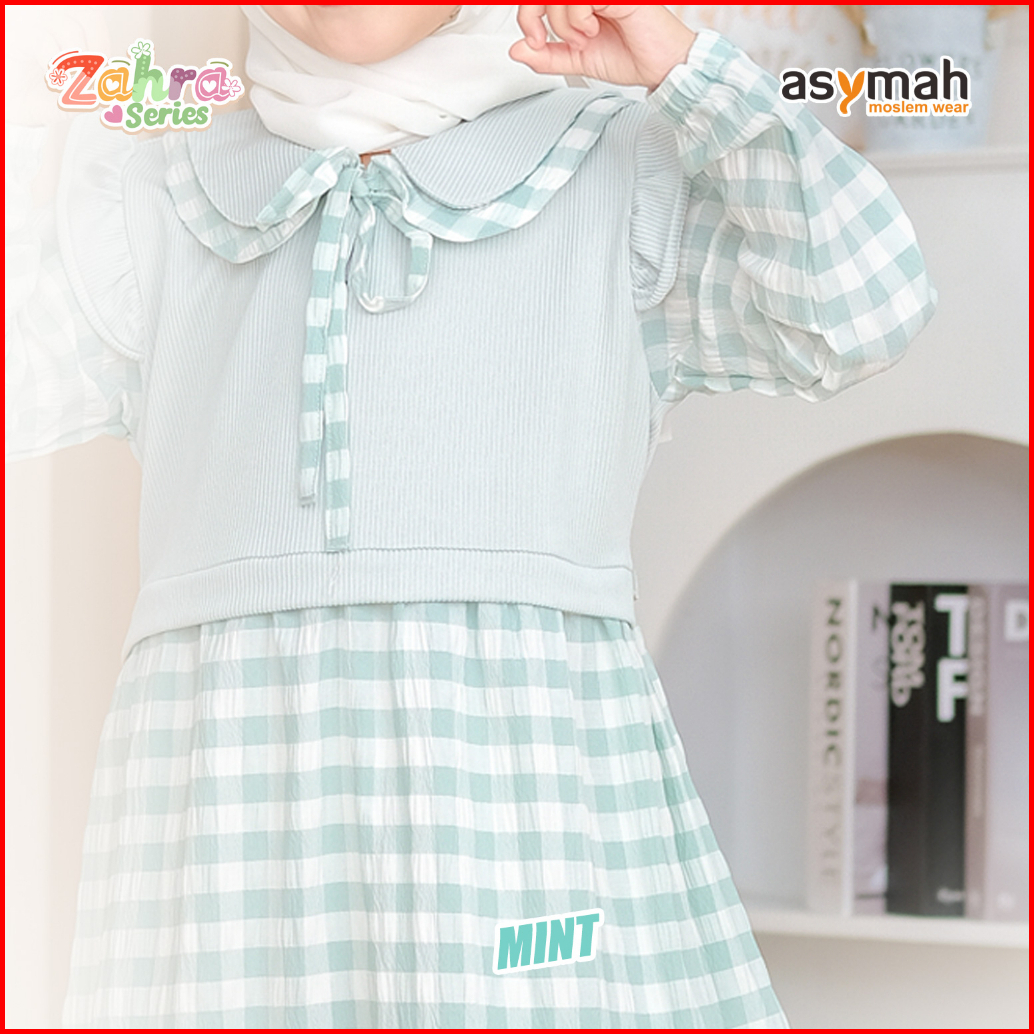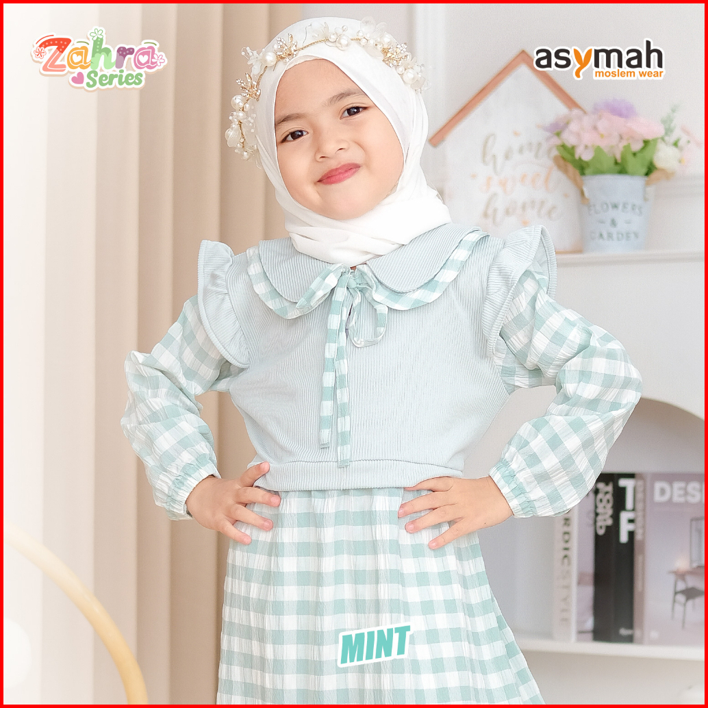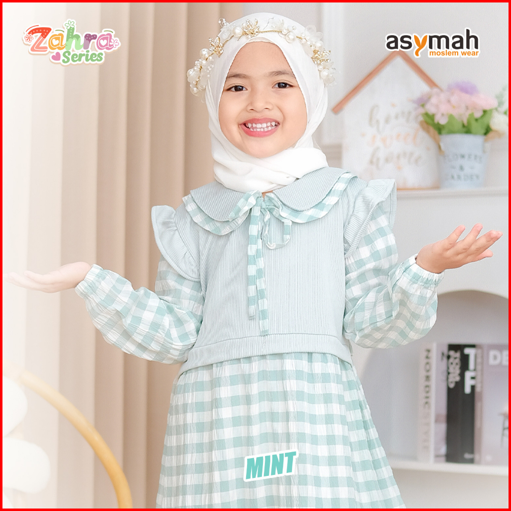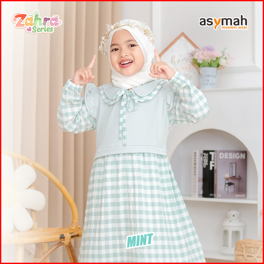 - Gamis Anak Bahan Arumi Crinkle Zahra Series V2 Warna Mint By Asymah