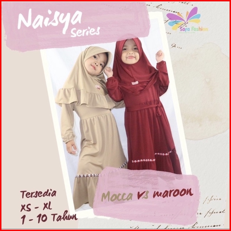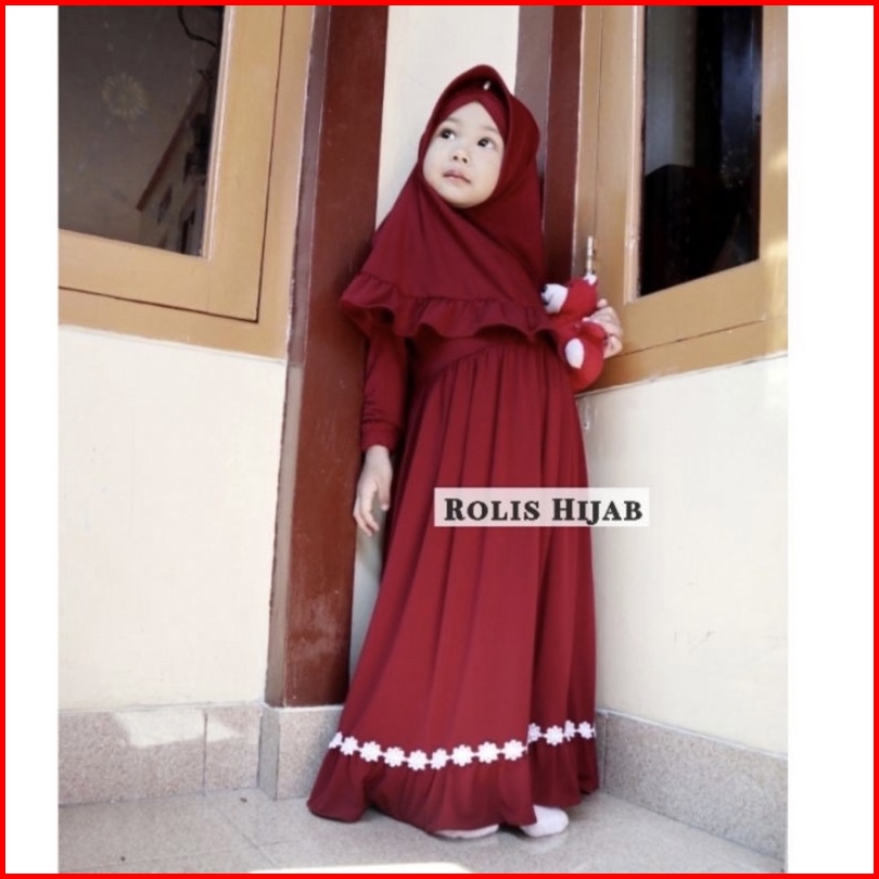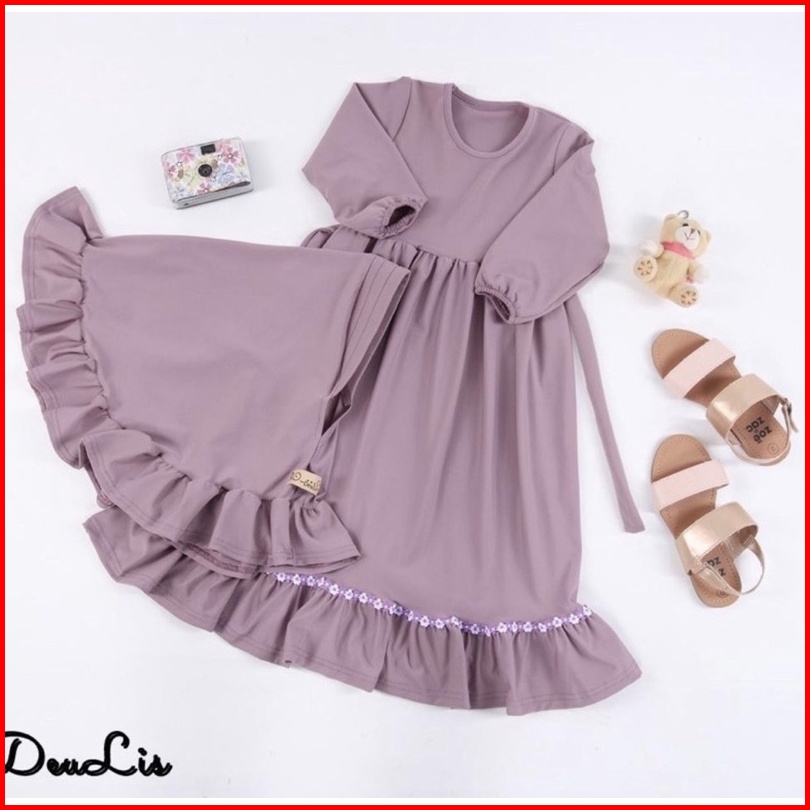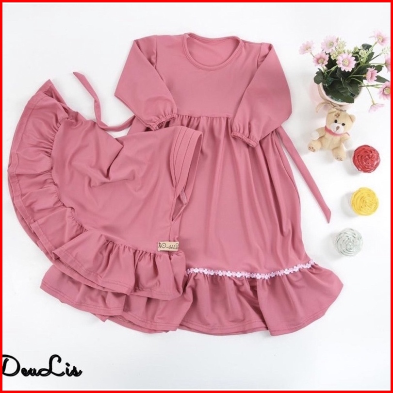 Gamis Anak Jilbab Pakaian Muslim Anak Perempuan Danisha 1thn-14thn Size S-xxl Bahan Jersy Plus Jilbab