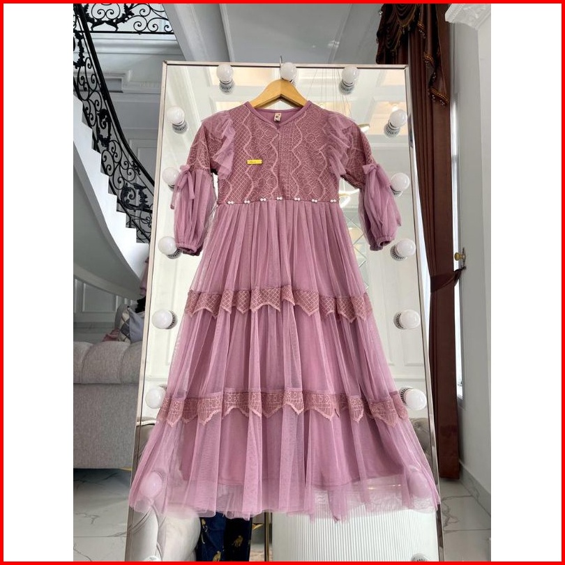 Gamis Hasya Mutiara Dress Pesta Anak Perempuan Dress Bahan Brukat Mix Tille Gamis Anak Gamis Couple Gamis Terlaris