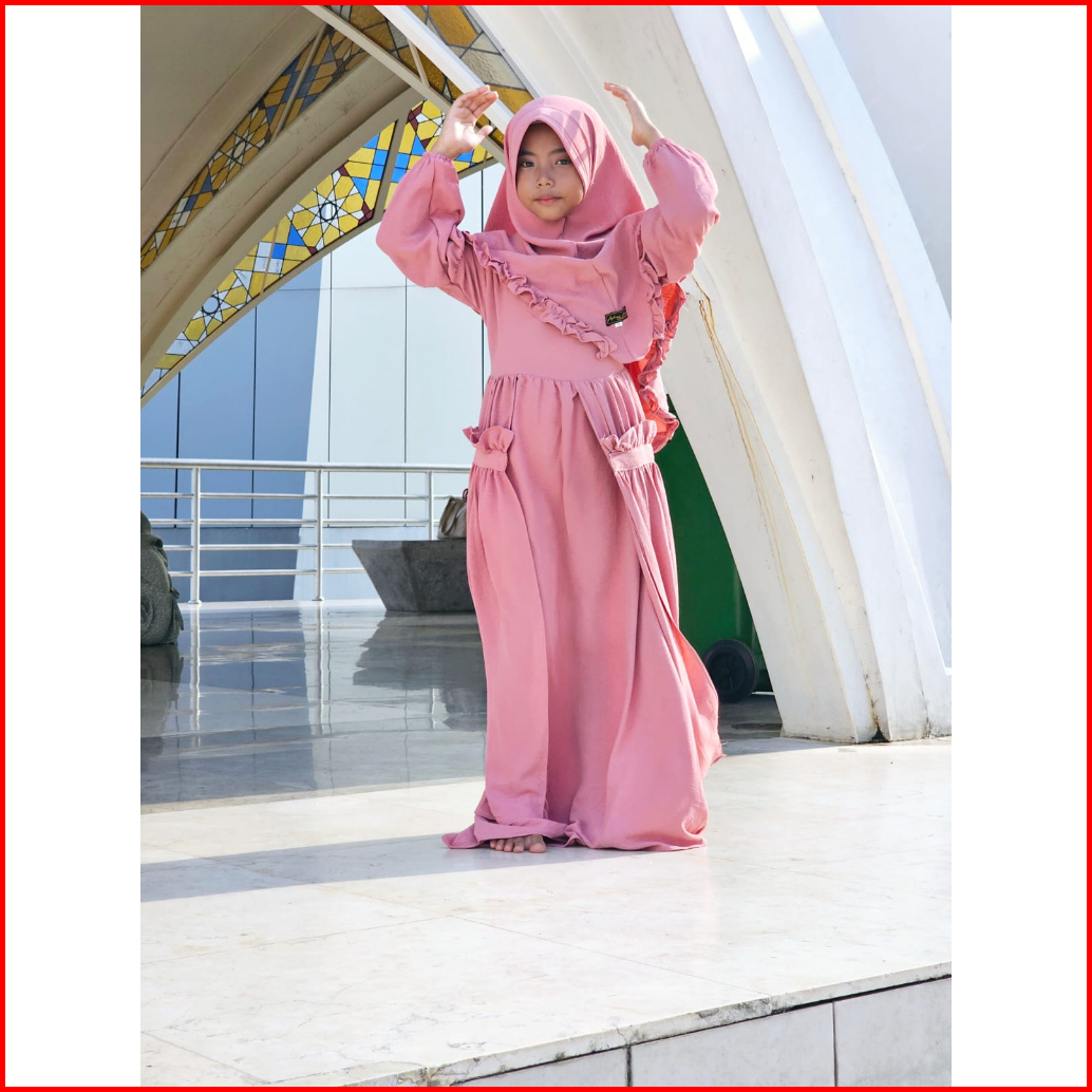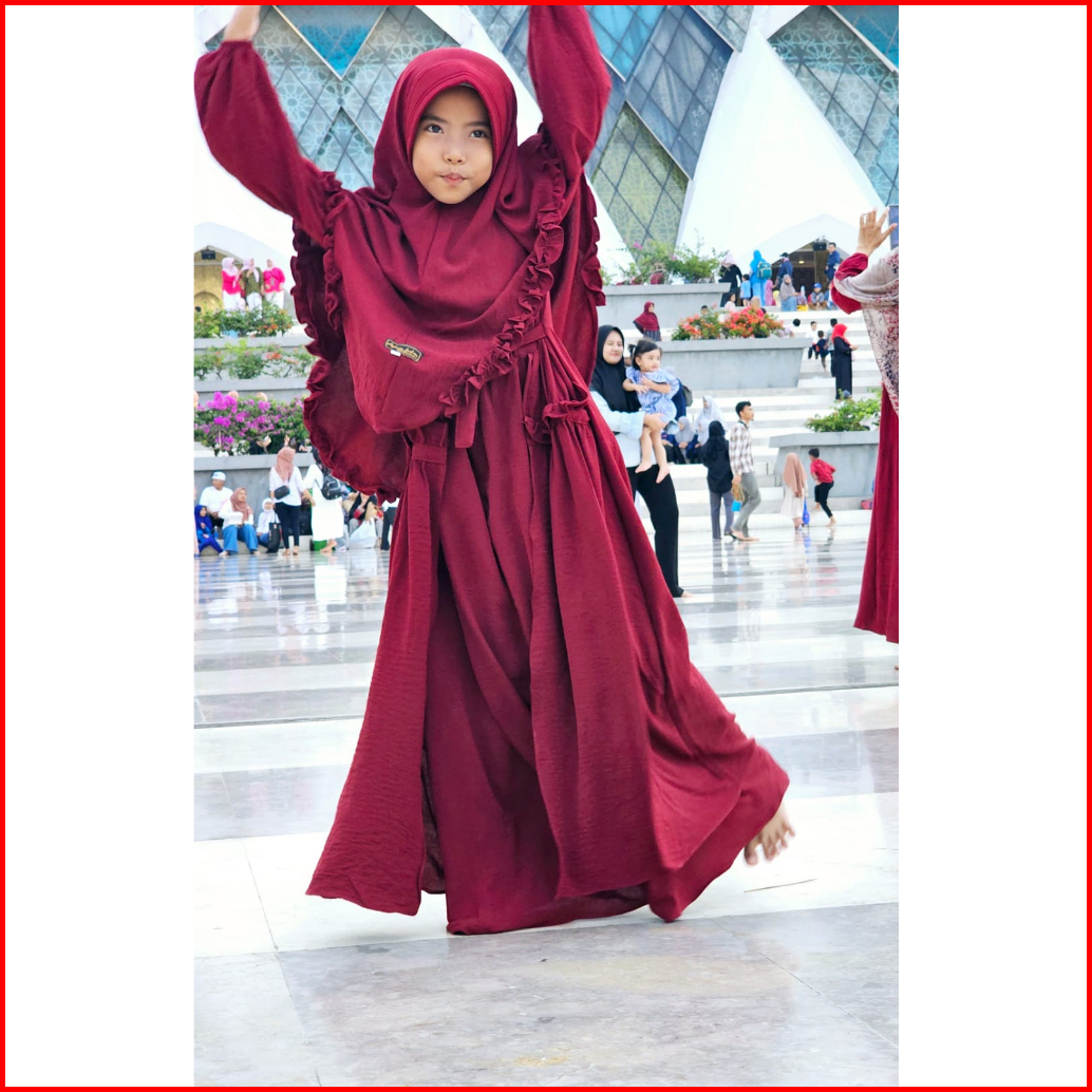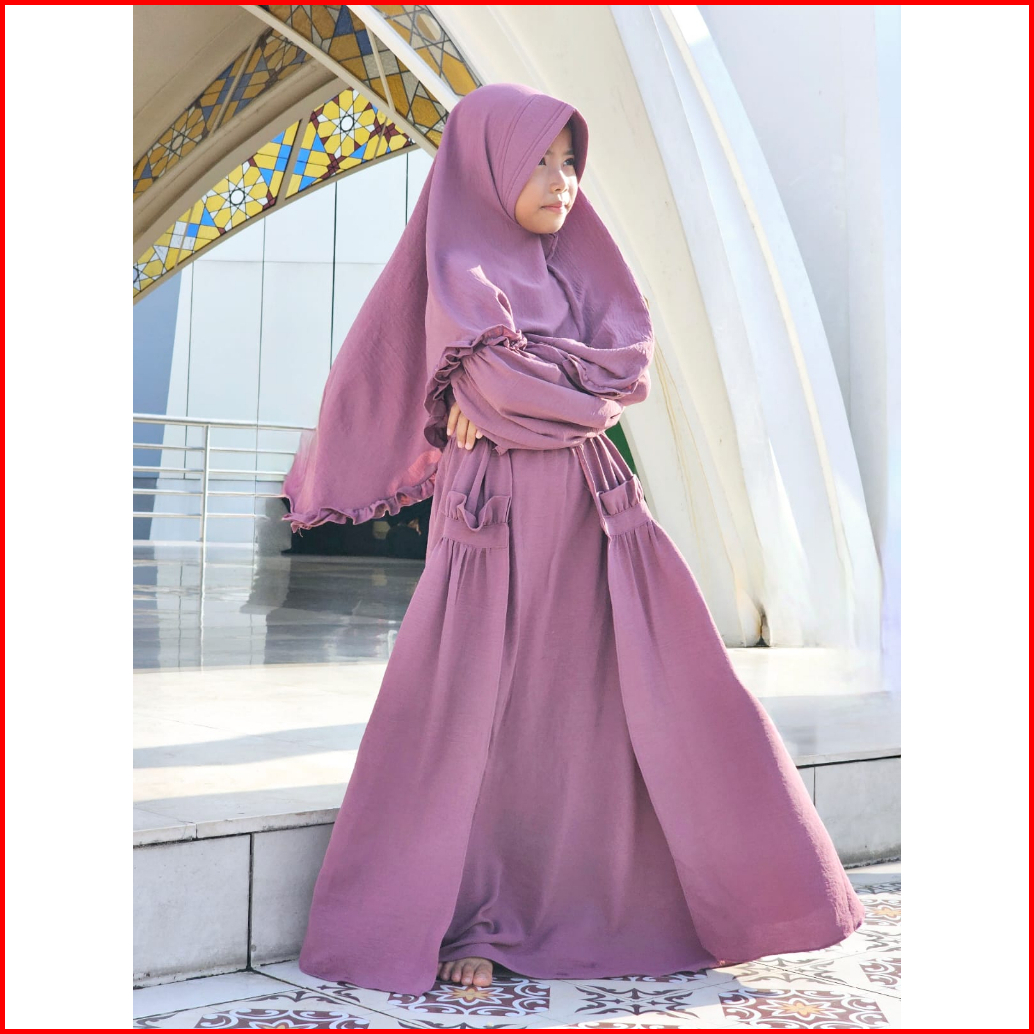 Afsheen Baju Gamis Syar I Anak Perempuan Muslim Set Hijab Usia 1-10 Tahun Bahan Crinkle Airflow Premium Ukuran Xs S M L