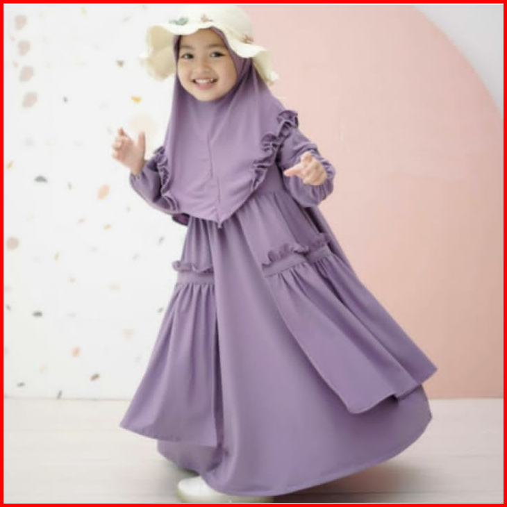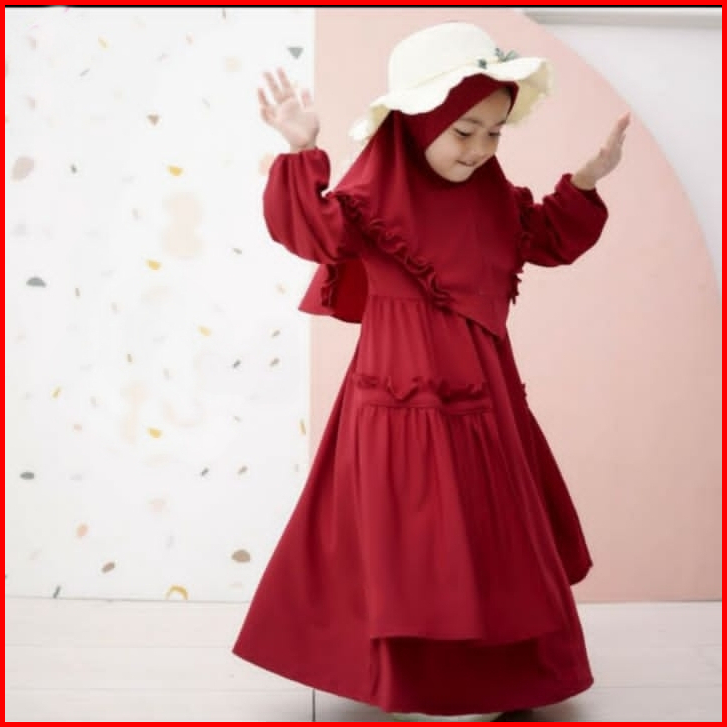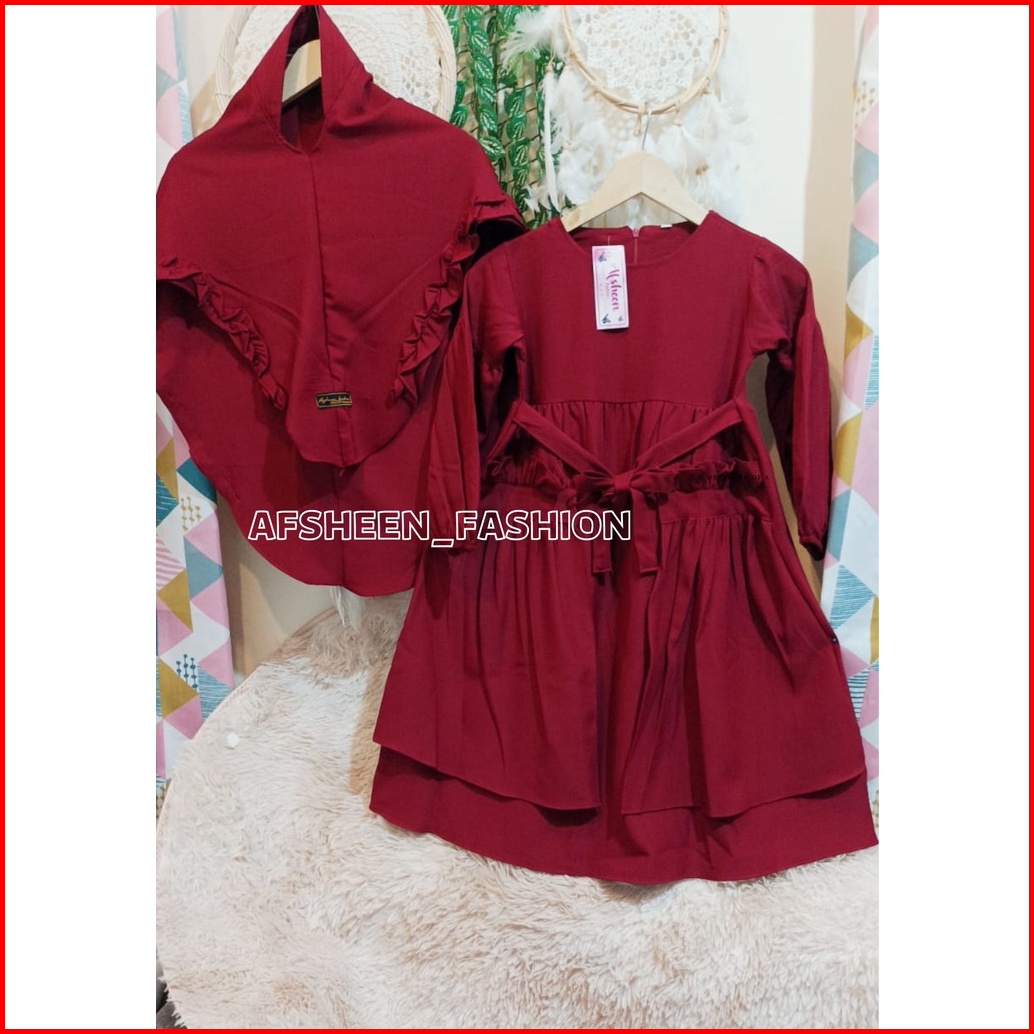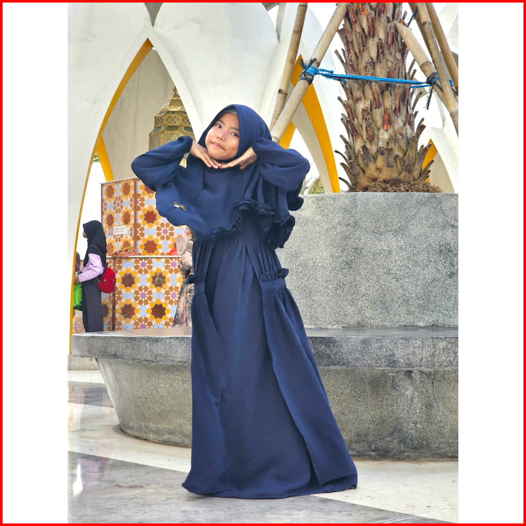 Afsheen Baju Gamis Syar I Anak Perempuan Muslim Set Hijab Usia 1-10 Tahun Bahan Crinkle Airflow Premium Ukuran Xs S M L