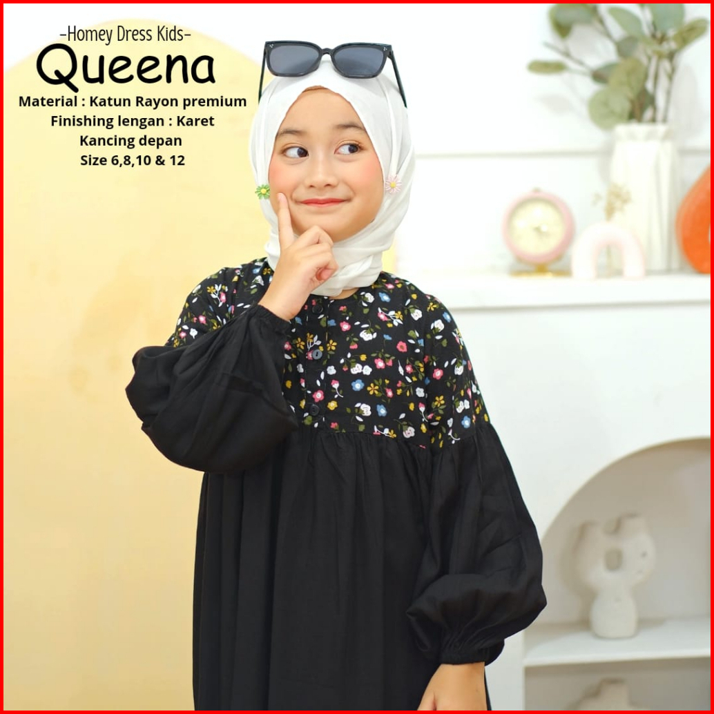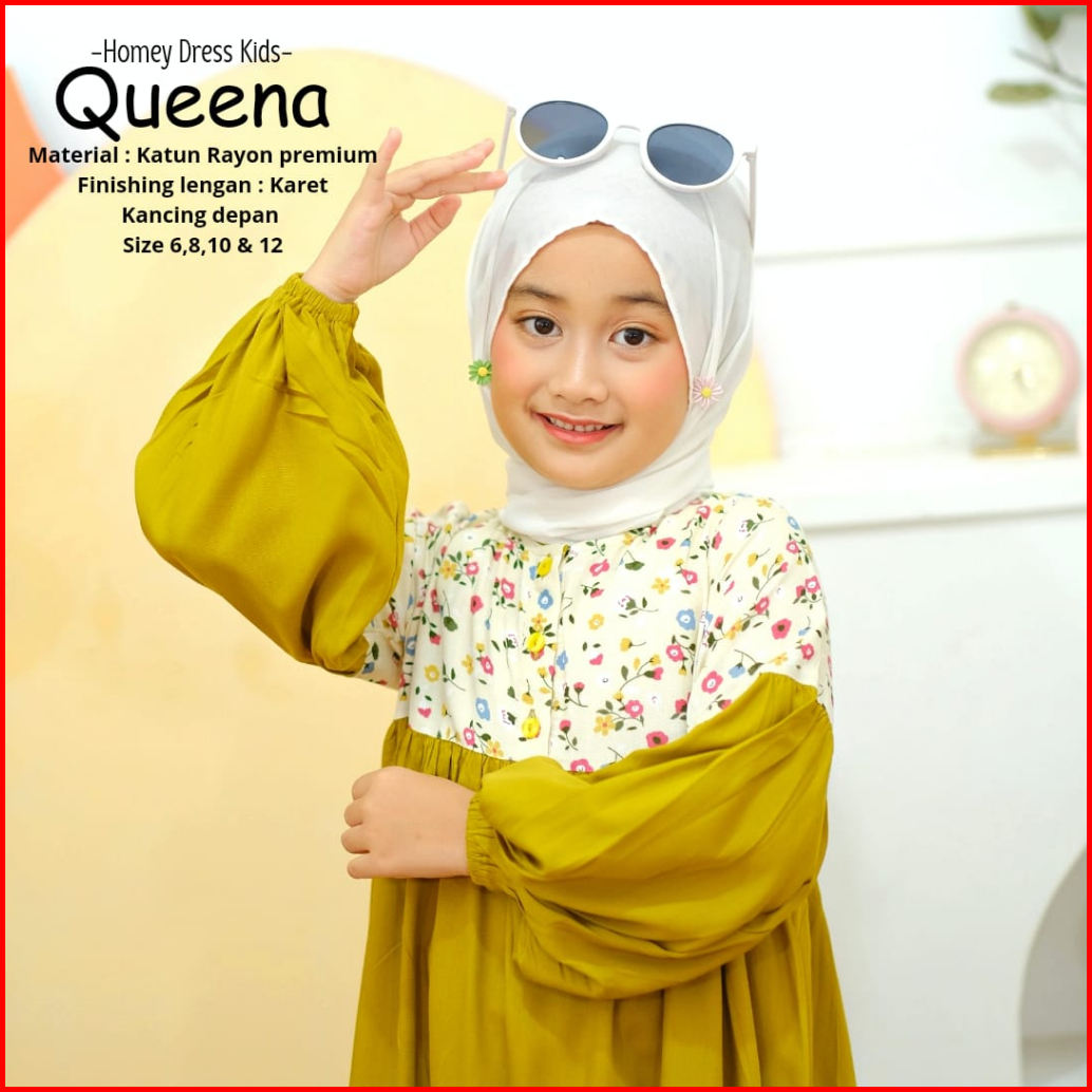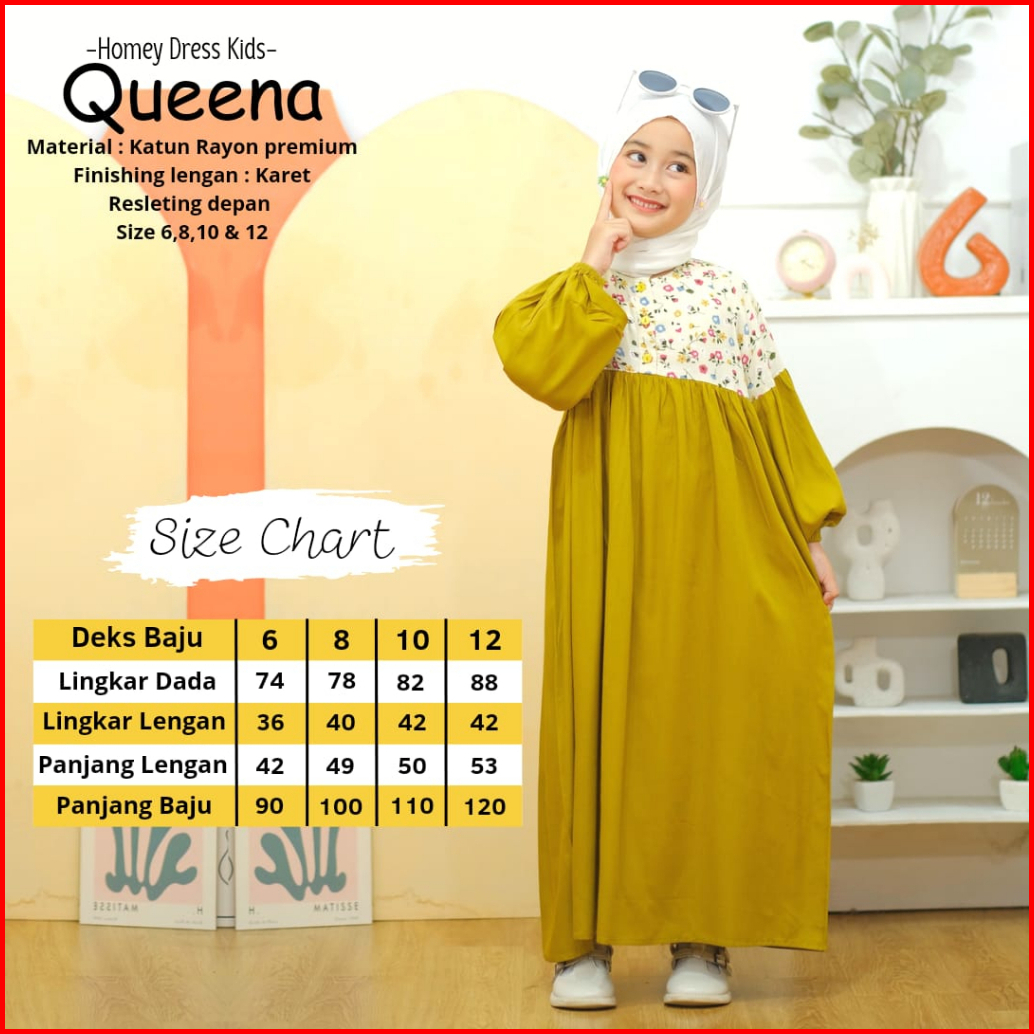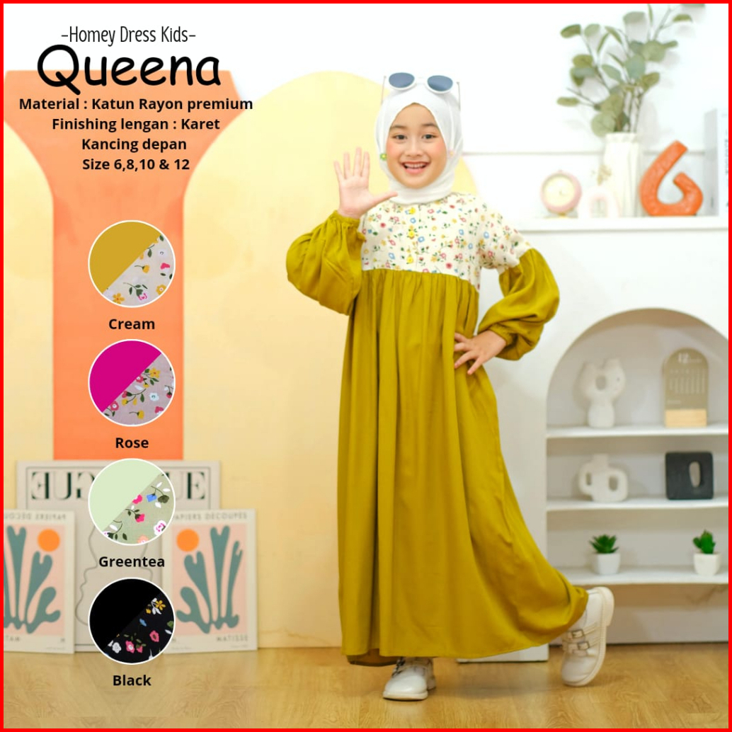 Gamis Anak Motif Bunga Homey Dress Anak Queena Gamis Anak Muslimah Usia 4-12tahun Bahan Katun Rayon Premium Nyaman Dipak