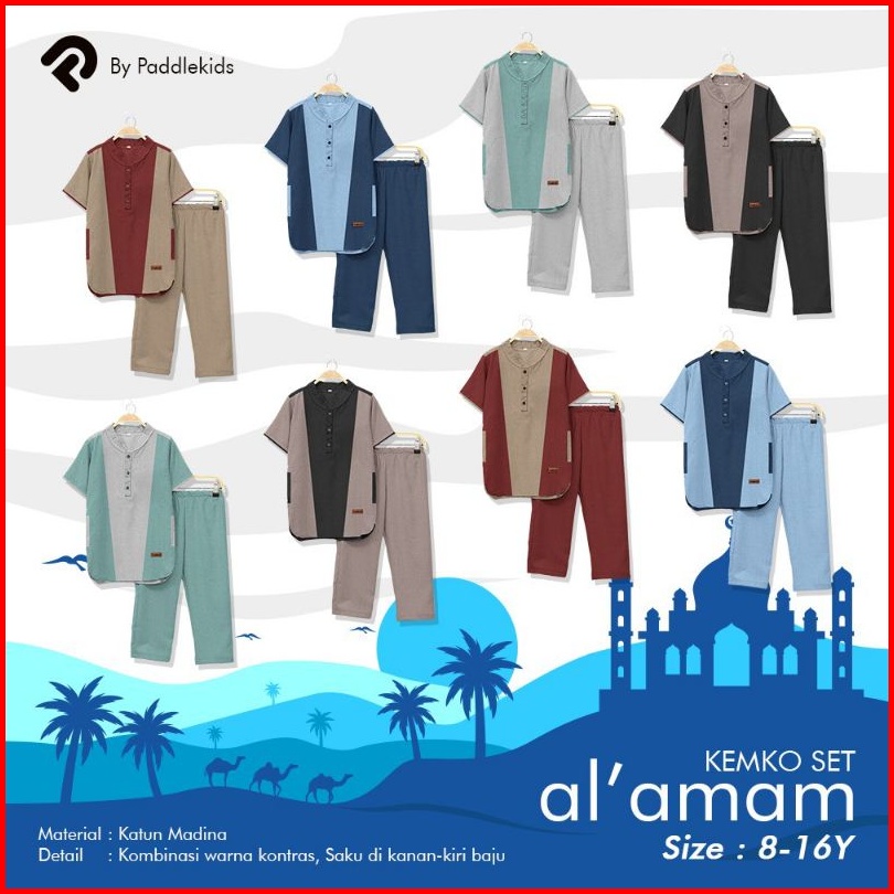Baju Setelan Koko Anak Laki Laki Al Amam Lengan Pendek Usia 8-16 Tahun New