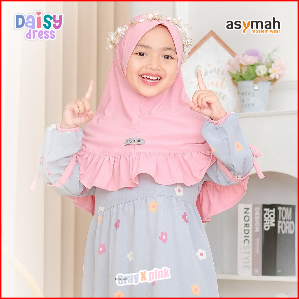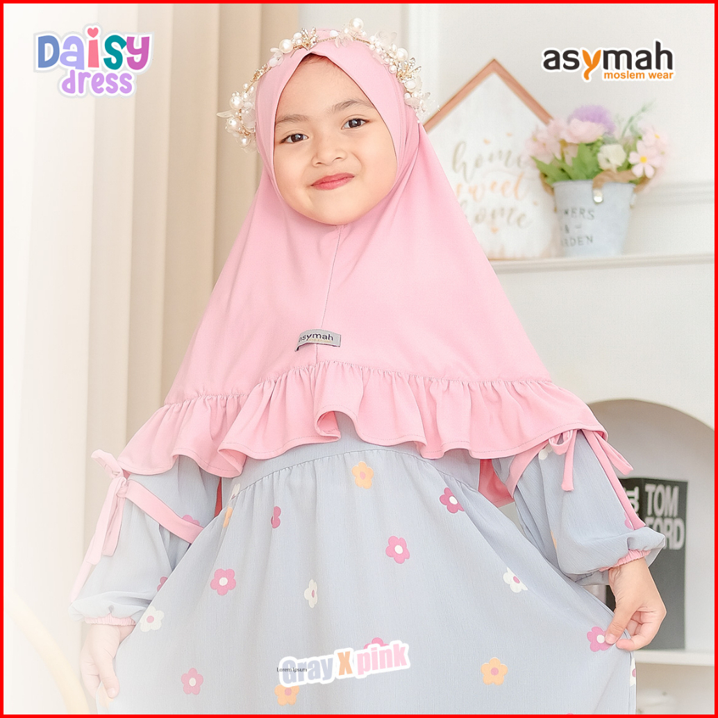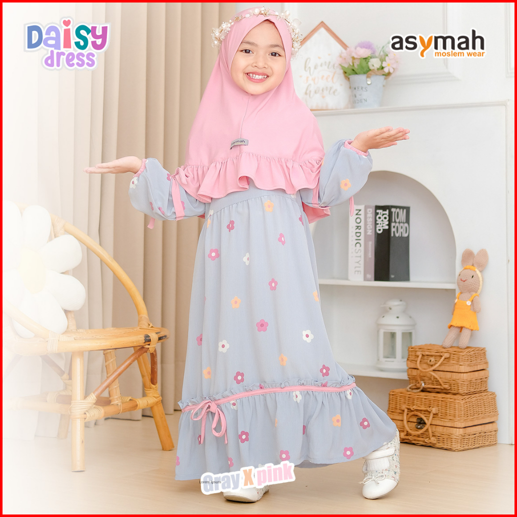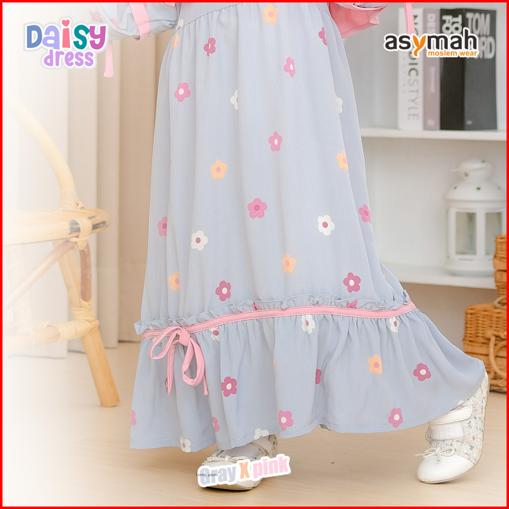 Dress Anak Perempuan Daisy Dress Warna Grey Mix Pink By Asymah