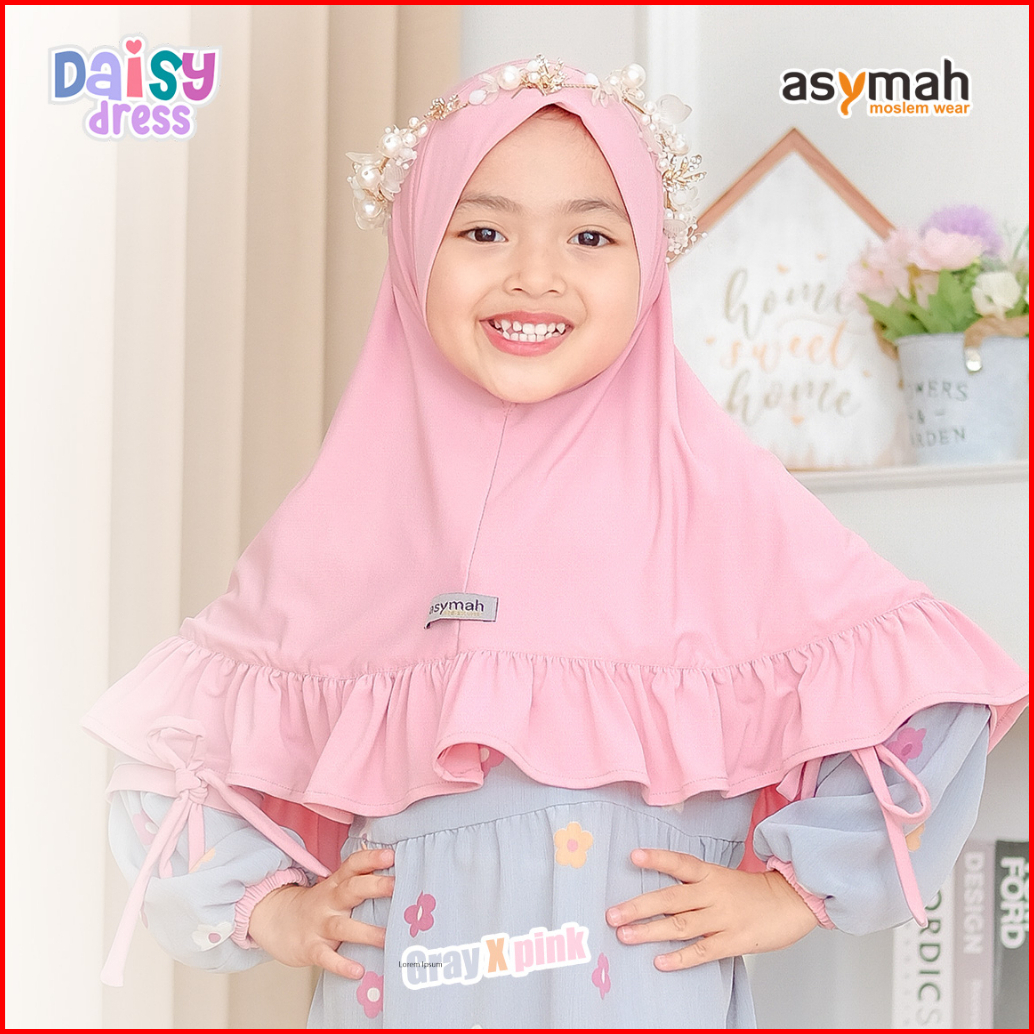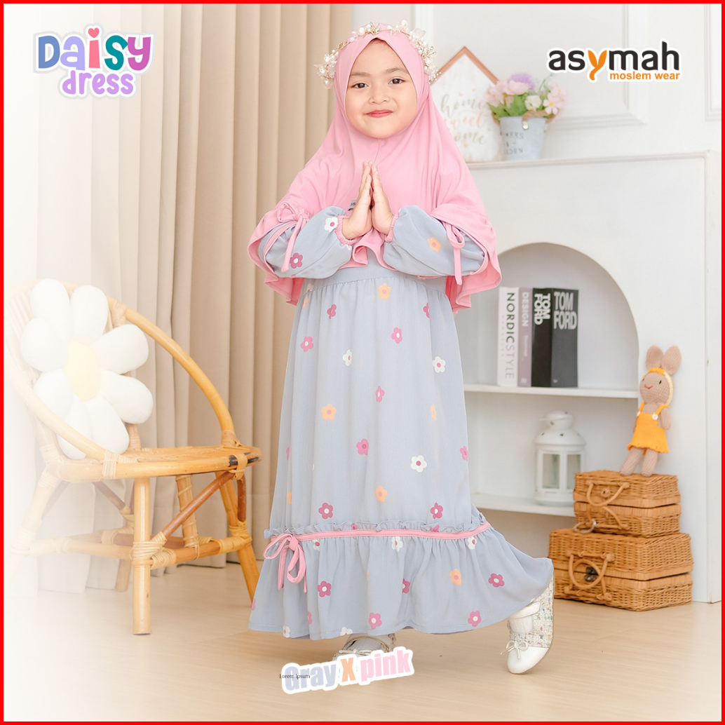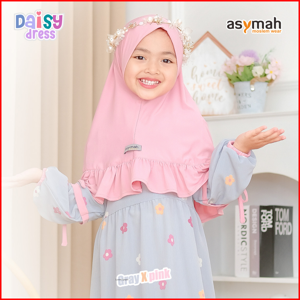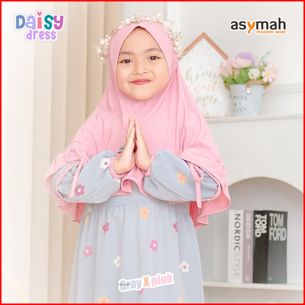 Dress Anak Perempuan Daisy Dress Warna Grey Mix Pink By Asymah