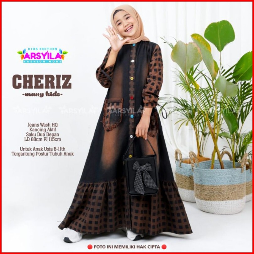 Cheriz Gamis Anak Perempuan Umur 8 Sampai 11 Tahun Remaja Tanggung Bahan Jeans Adem Lembut