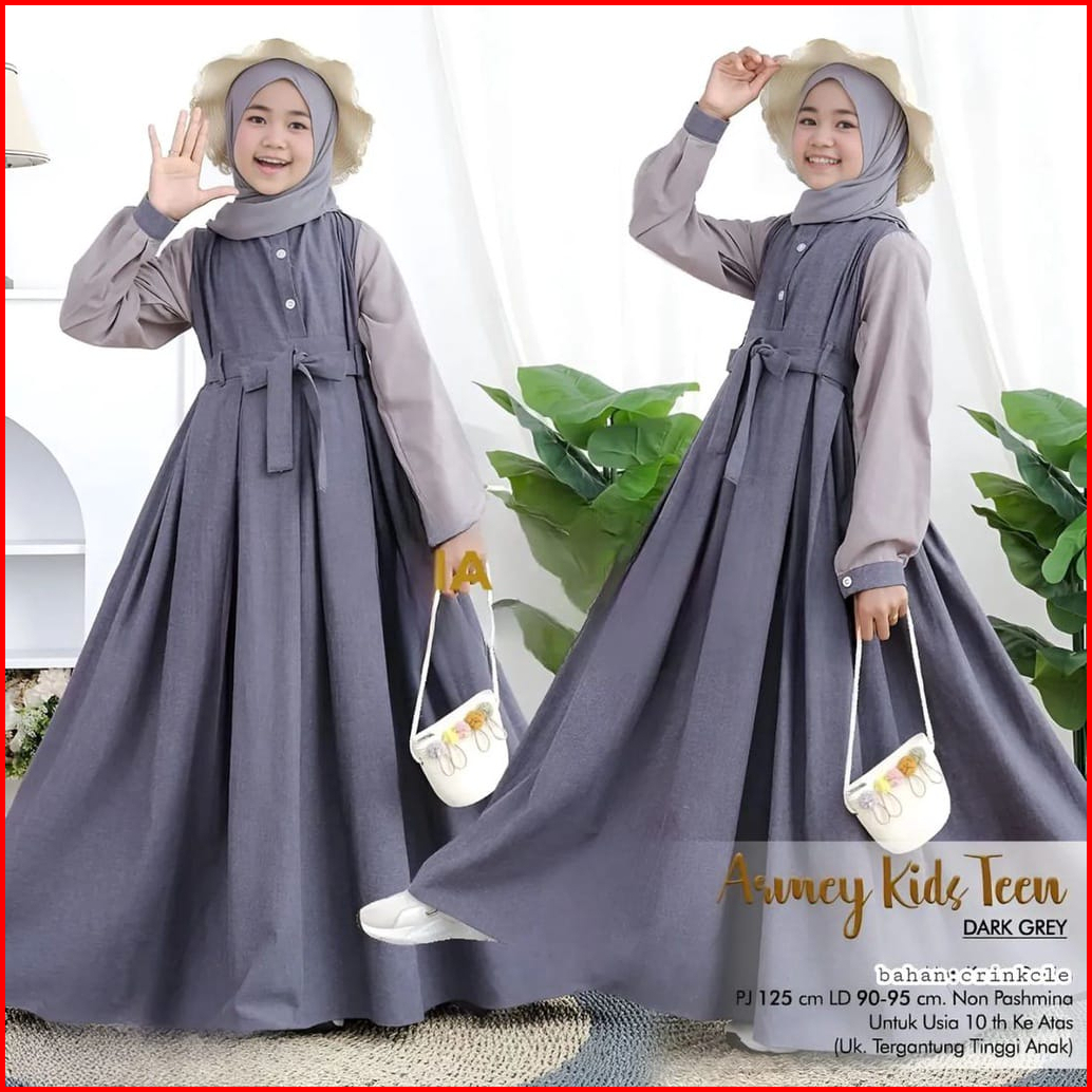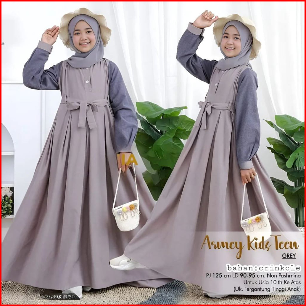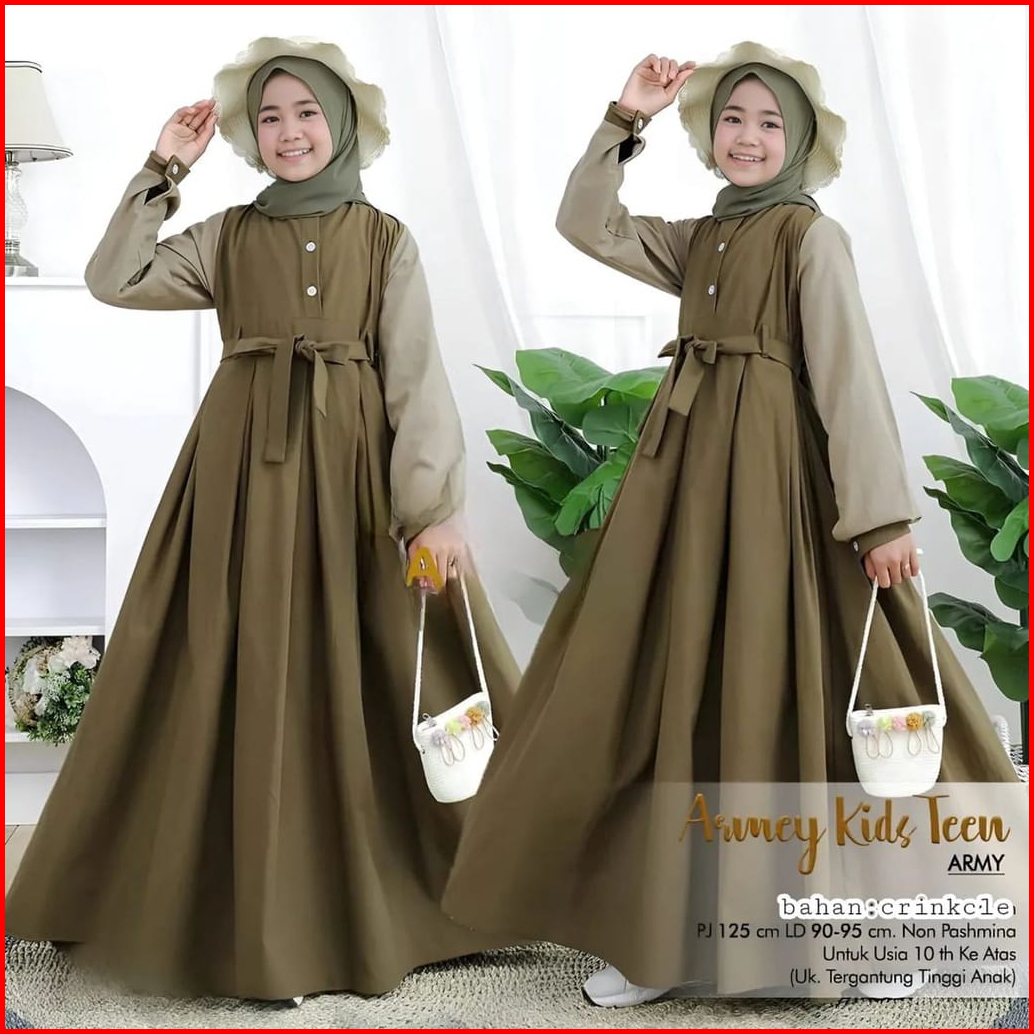 Armey Kids Teen Gamis Muslim Tanggung Cringkle Airflow Premium Dress Anak Remaja Usia 6 - 16 Tahun
