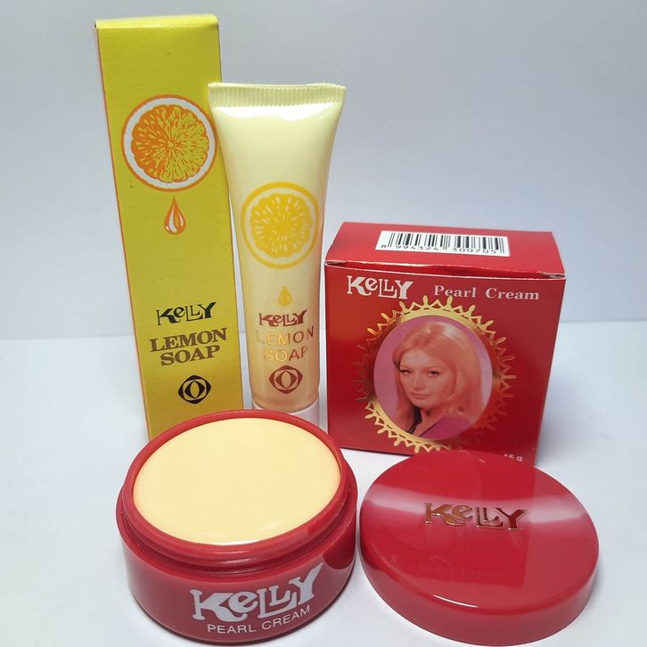 Paket Kelly 5 in 1 Plus Serum Hanasui kuning - Pearl Cream Kelly 15gr + Kelly Lemon Soap 25gr + Bedak Kelly Compact Powd