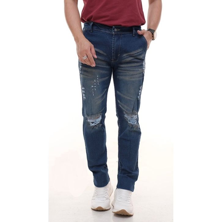 Celana Jeans Panjang Zack Lee Motif Sobek Pria Jeans Slim Fit