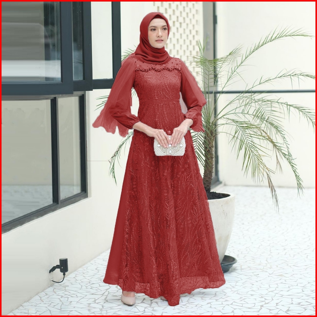 Ready Jumbo Dan Allsize Maxi Dress Gamis Brokat Luna Dress Brukat Tulle Kekinian Outfit Pesta Seragam Bridesmaid Gamis B