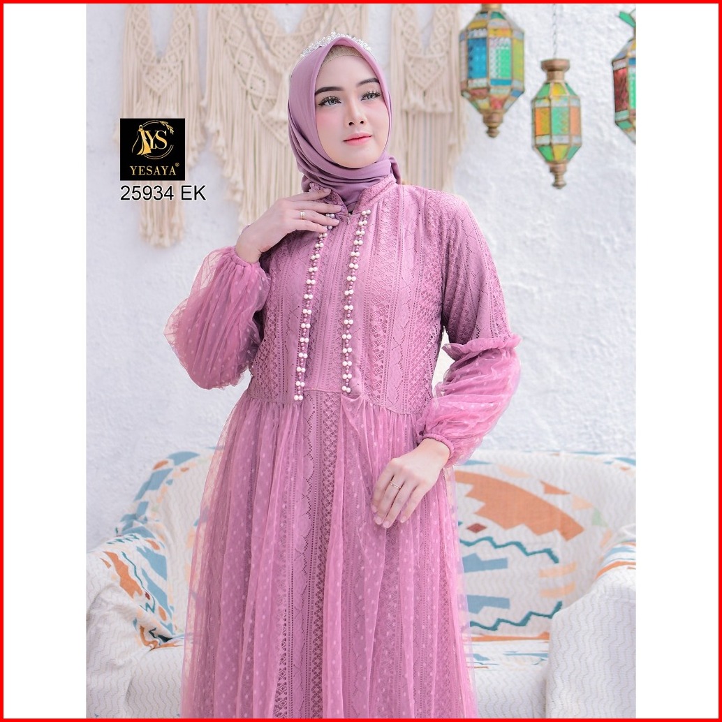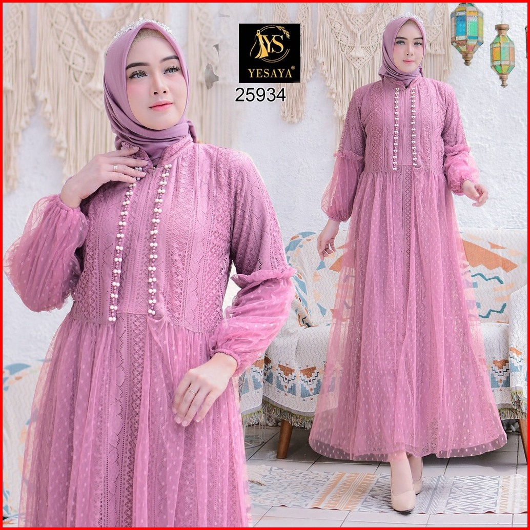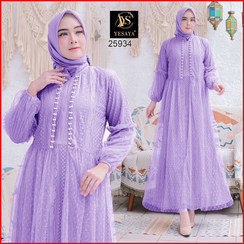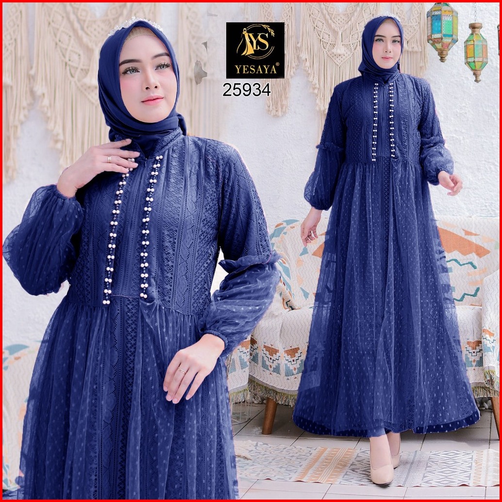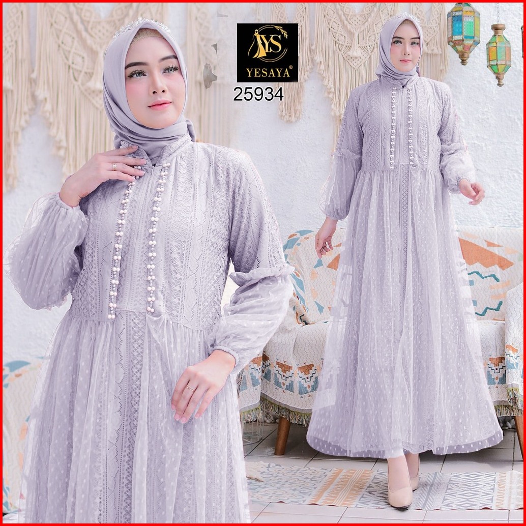 Maxi Yesaya M-l-xxl Gamis Pesta Mewah Full Tille Halus Malika Mutiara Payet Busui Friendly Jumbo 25934