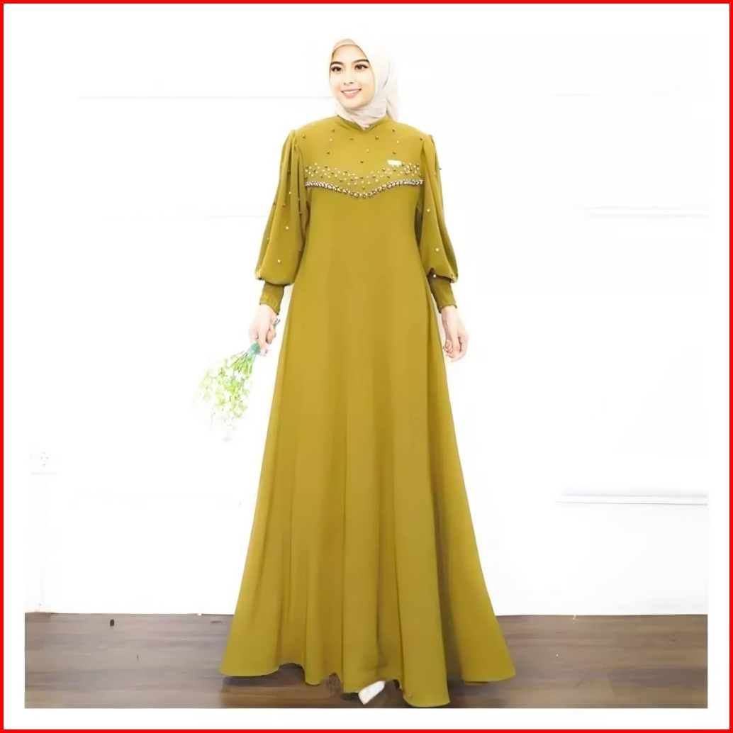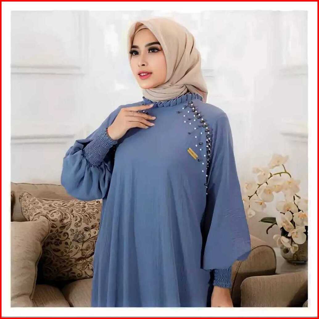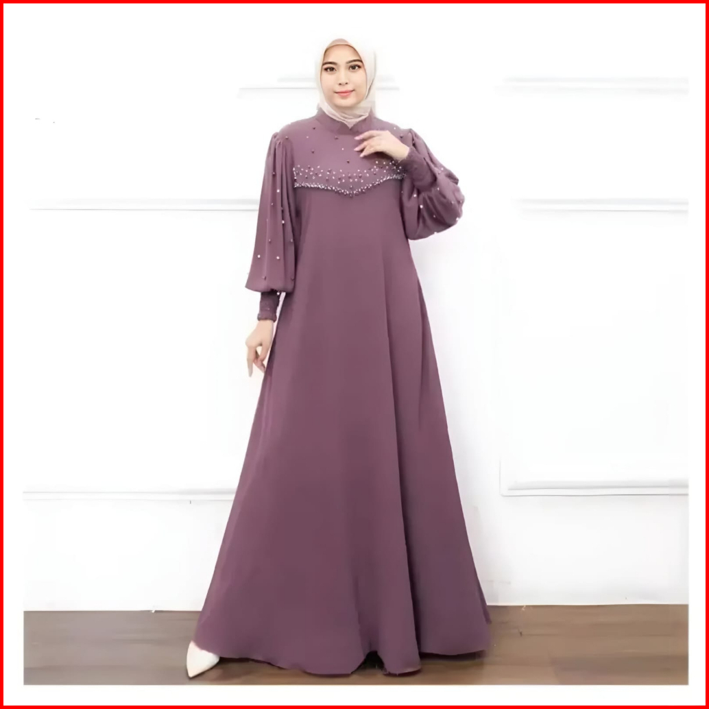 Najah Fashion Vioni Desayu Dress Lebaran 2025 Kekinian Bahan Cringkel Airflow Mix Payet Mutiara