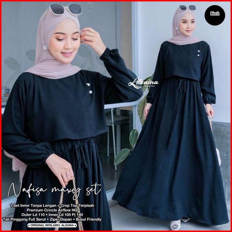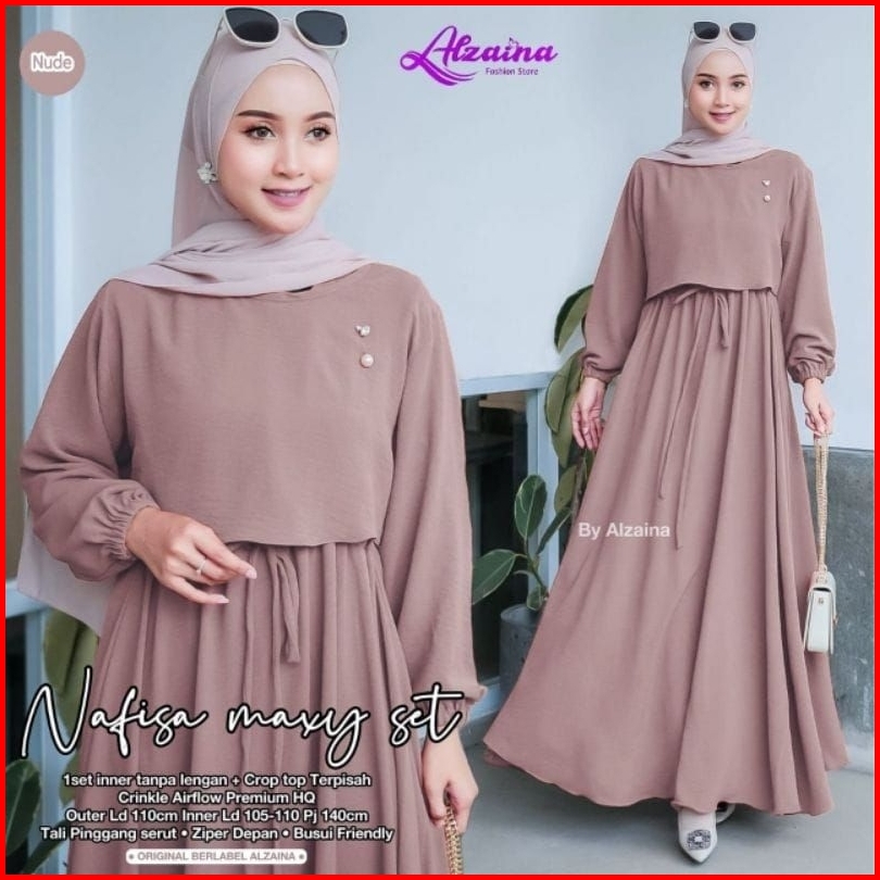 Gamis Zafina 2 In 1 Cringkel Airflow Gamis Polos Masakini Bahan Berkualitas Gamis Wanit Model Terbaru 2023 Ukuran Jumbo