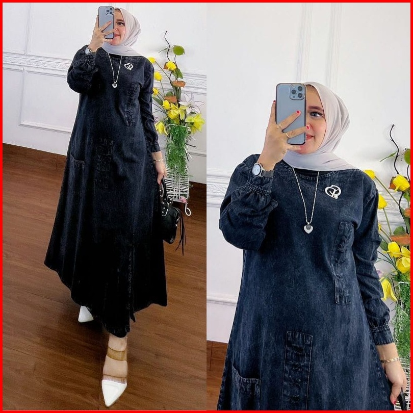 Gamis Jeans Briska Maxy Dress Light Snow Baju Muslim Dress Jeans Kekinian