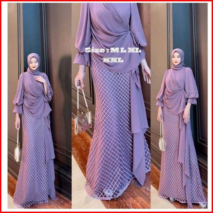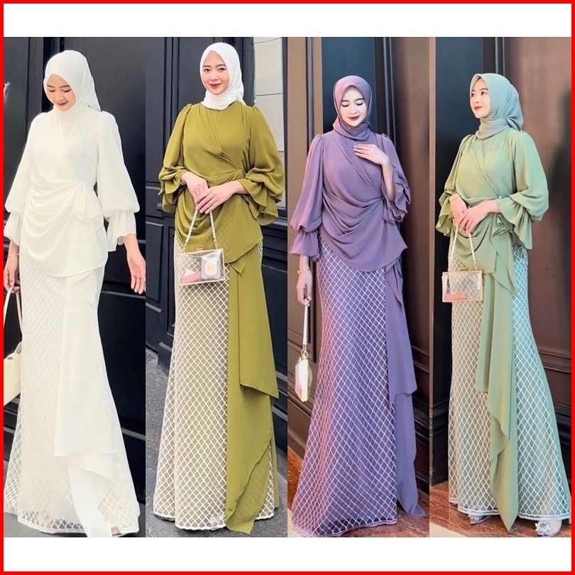 Gamis Pesta Brukat Dress Kondangan Terbaru 2024 Lea Dress Gamis Ceruty Babydoll Mix Brukat Tille Luxury Premium Gamis