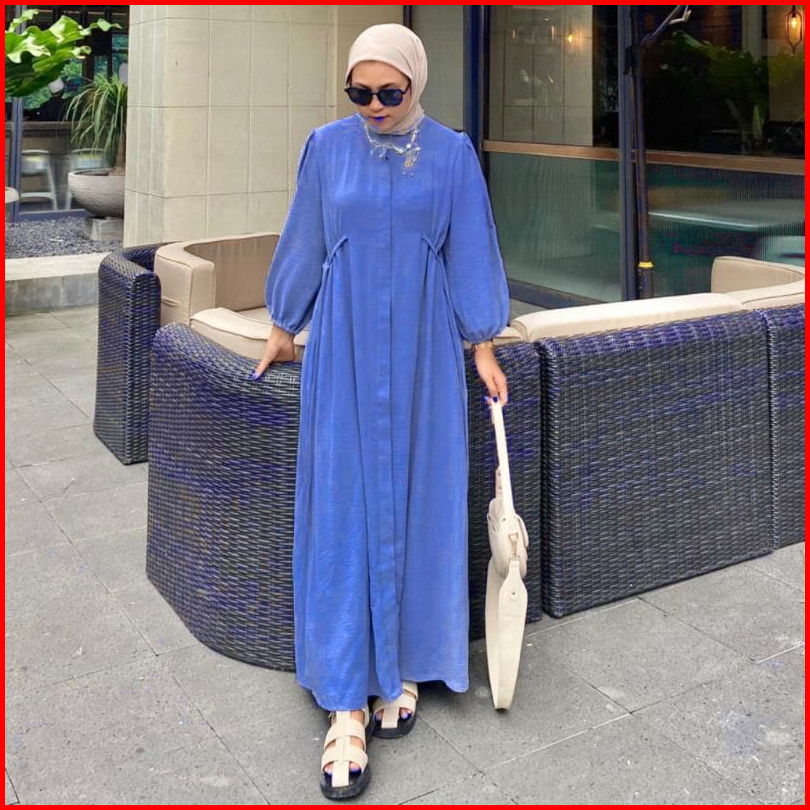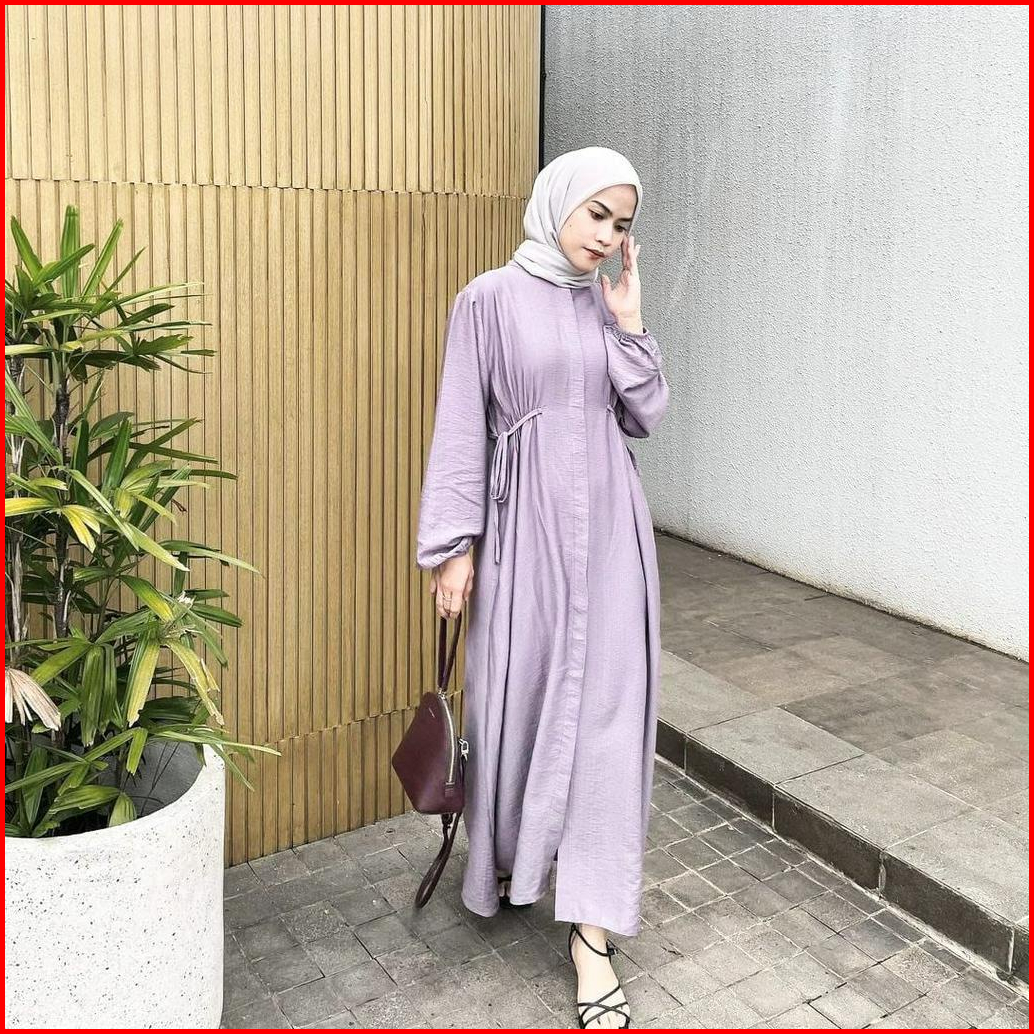 Hazel Midi Dress Polo Linen Tali Pinggang- Gamis Terbaru- Gamis Wanita