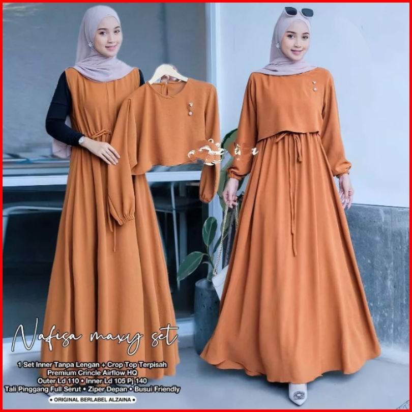 Crinkle Airflow Premium Gamis Nafisa Set2in1 Inner Outer Crop Model Terbaru Gamis Set Gamis Wanita Gamis Cantik Gamis Mu
