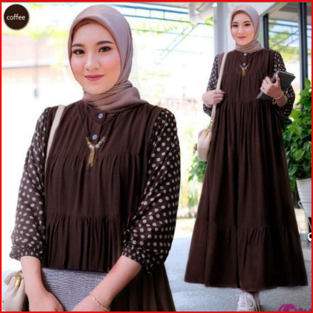 Dasima Gamis Polos Kombinasi Polkadot Midi Dress Muslim Terbaru 2024 Rayon Premium Tebal Halus