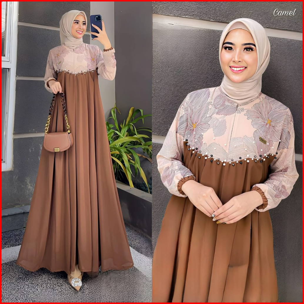 Najah Fashion02 Kifara Dress Kondangan Elegan Gamis Cringkel Terbaru Lebaran 2025 Kekinian