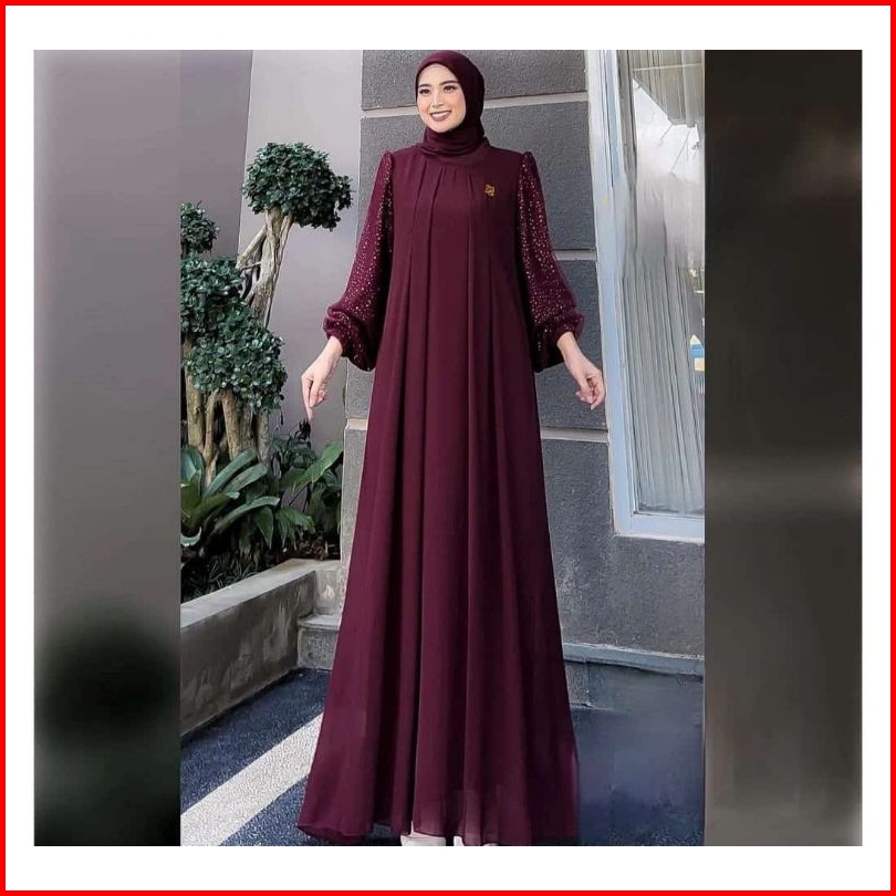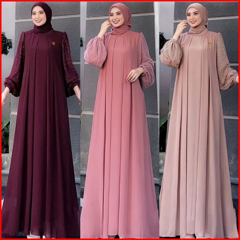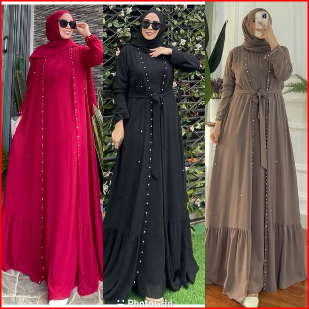Baju Kondangan Gamis Wanita Ceruty Aplikasi Mutiara Terbaru 2024 Gamis Pesta Muslim Wanita Mewah Gamis Jumbo Ceruty Baby