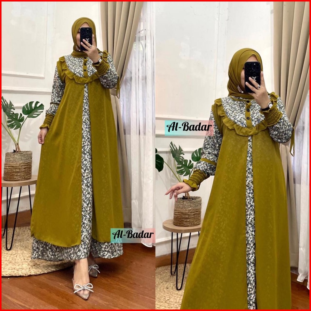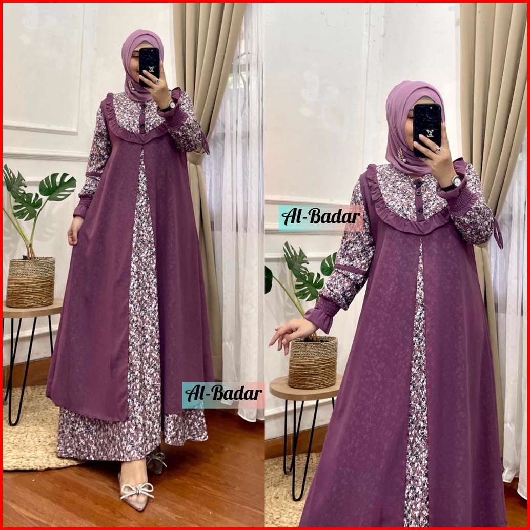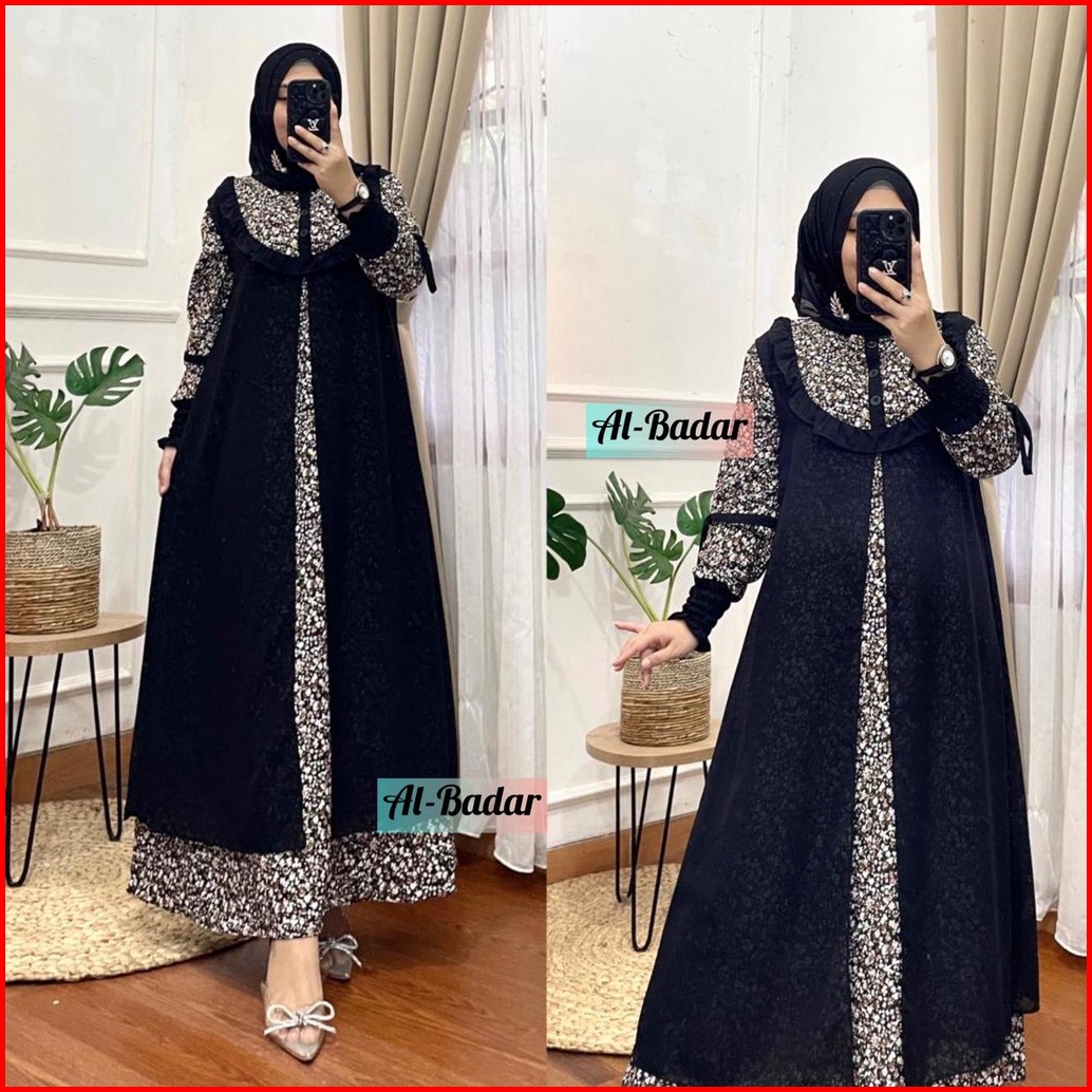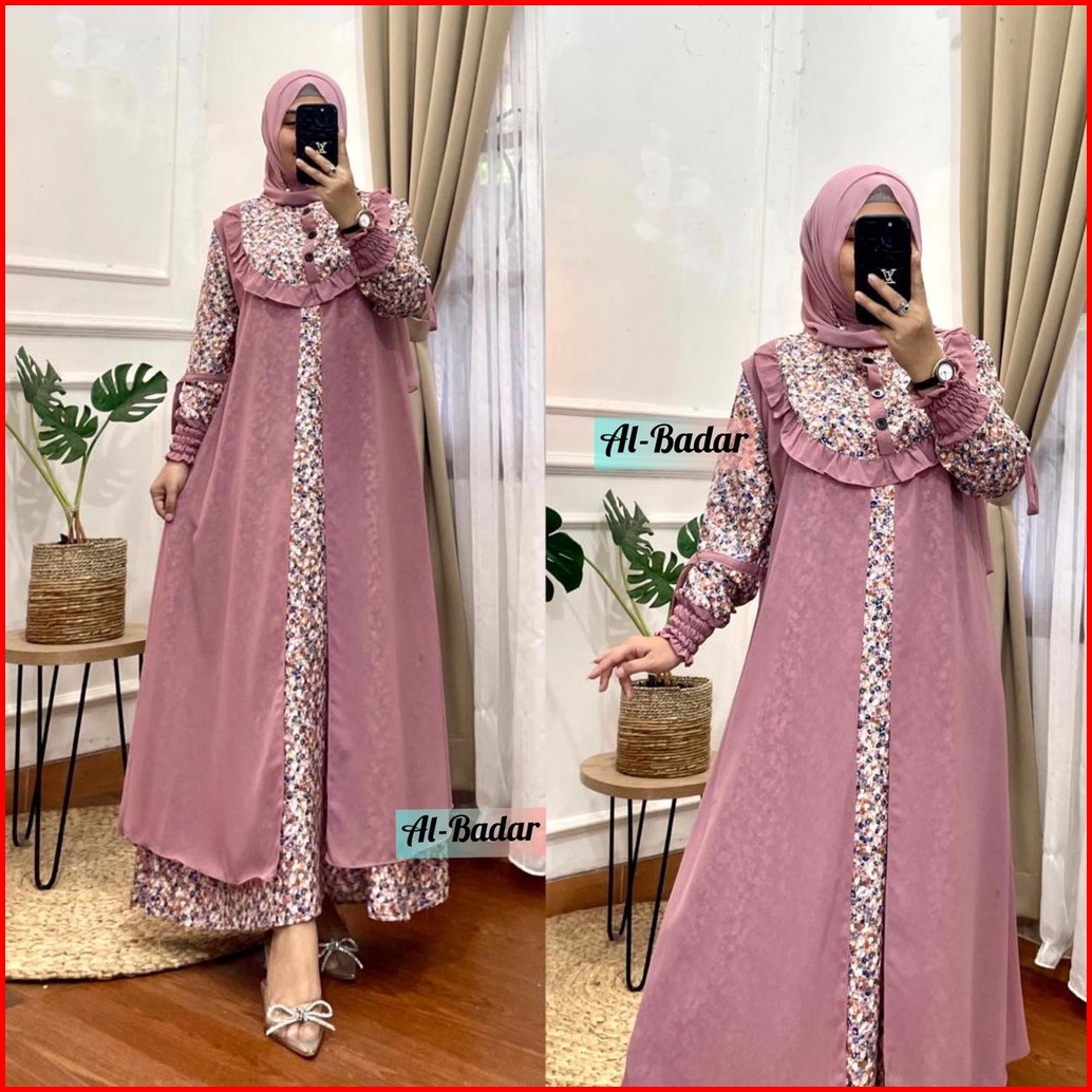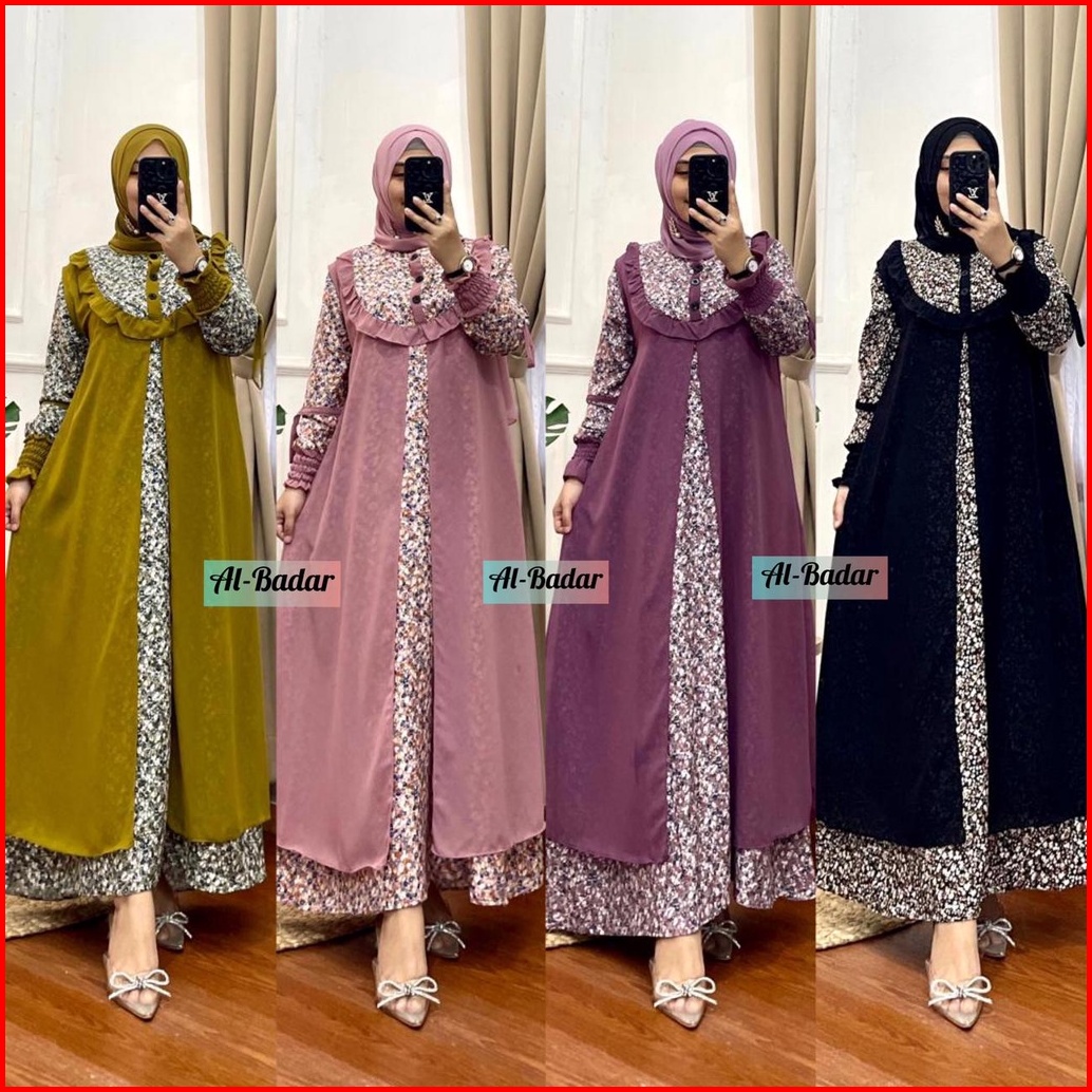 Gamis Outher Motif Bunga Shakila Import Mix Ceruty Babydoll Dress Outher Kancing Shakila Import Mix Ceruty Model Terbaru