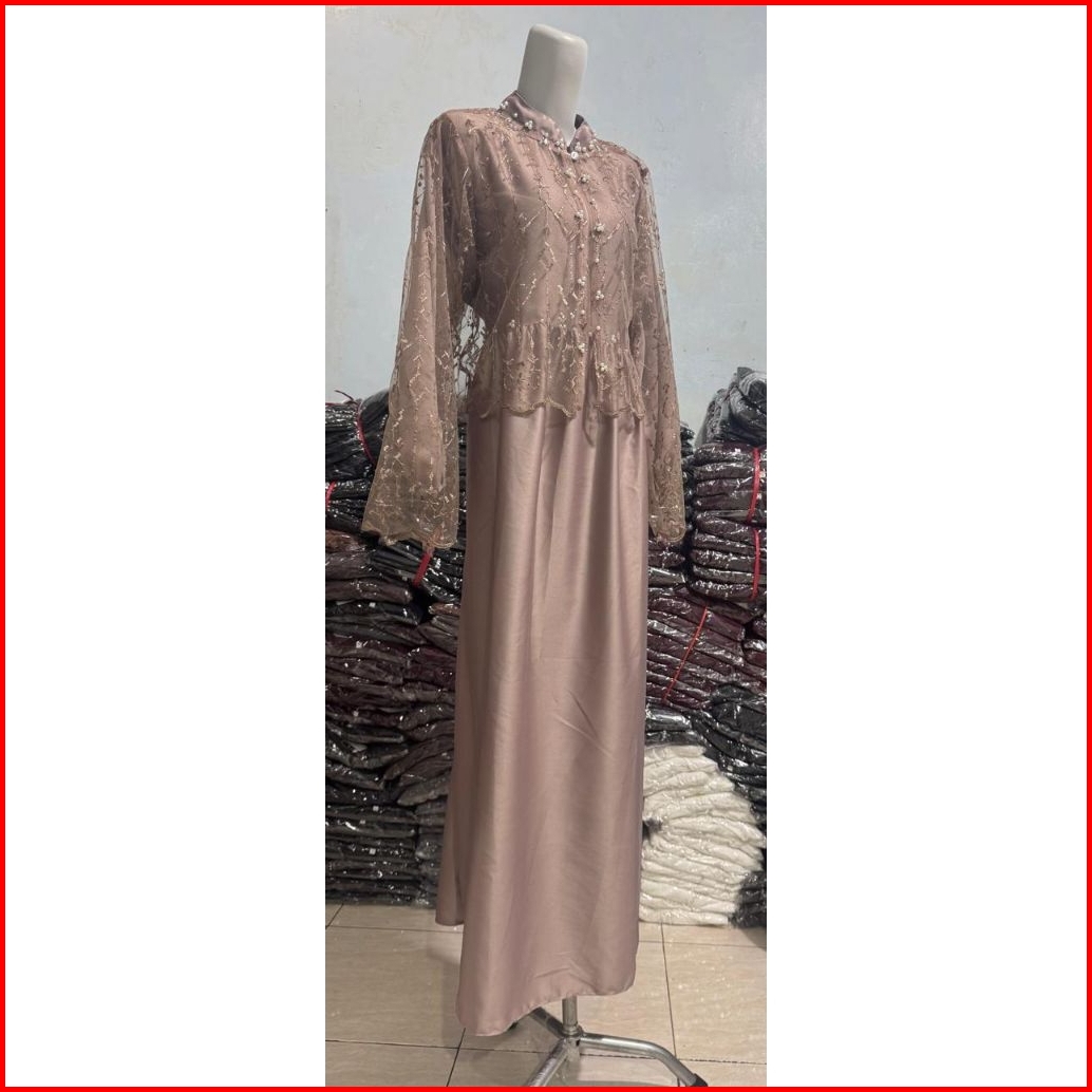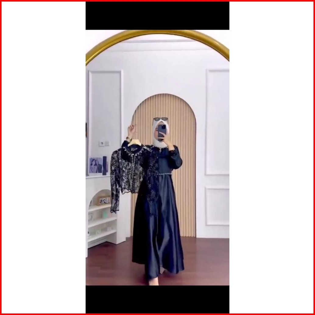 Keysha Dress Gamis Mewah Bahan Silk Premium Mix Brukat Aplikasi Payet Mutiara Gamis Pesta Kondangan