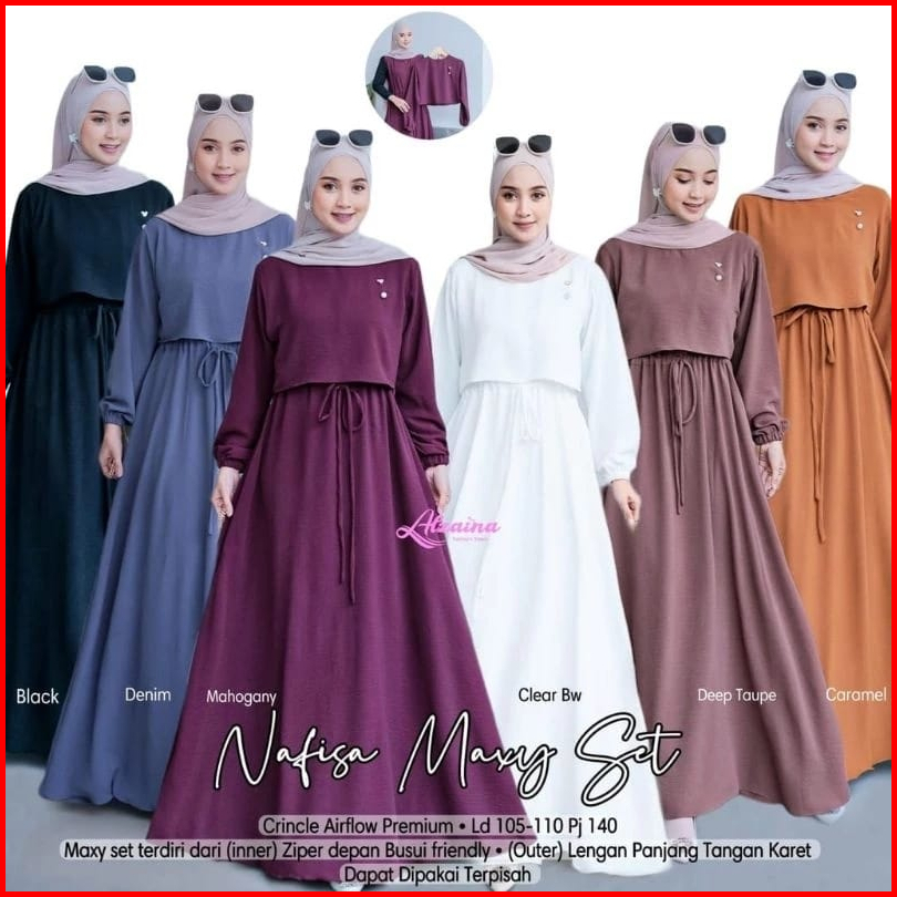 Gamis Wanita Nafisa Atasan Outher Crop Gamis Wanita Kekinian Maxy Set 2in1 Rayon Premium