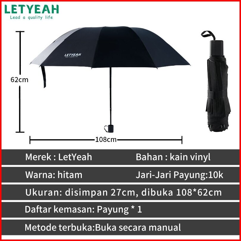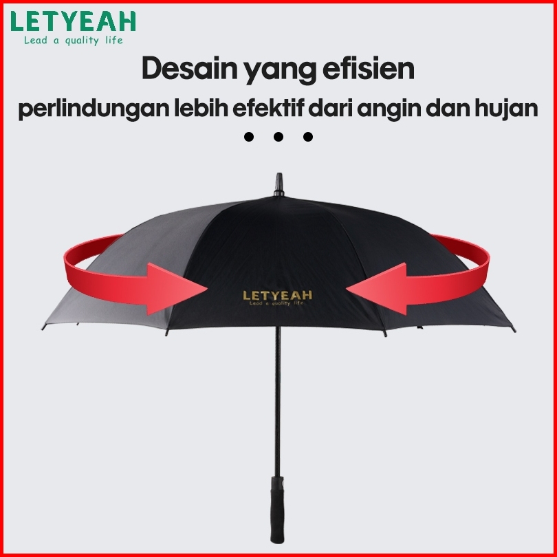 Letyeah Payung Hitam Black Umbrella Outdoor Payung Lipat Polo Manual 108cm Payung Golf Jumbo 120cm