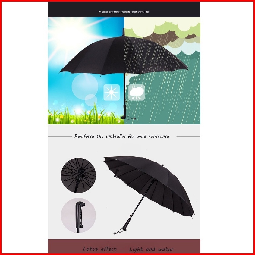 Payung Lipat Manual Buka Tutup Golf 16 Jari Payung Hujan Jumbo Gagang Tongkat - Sy06