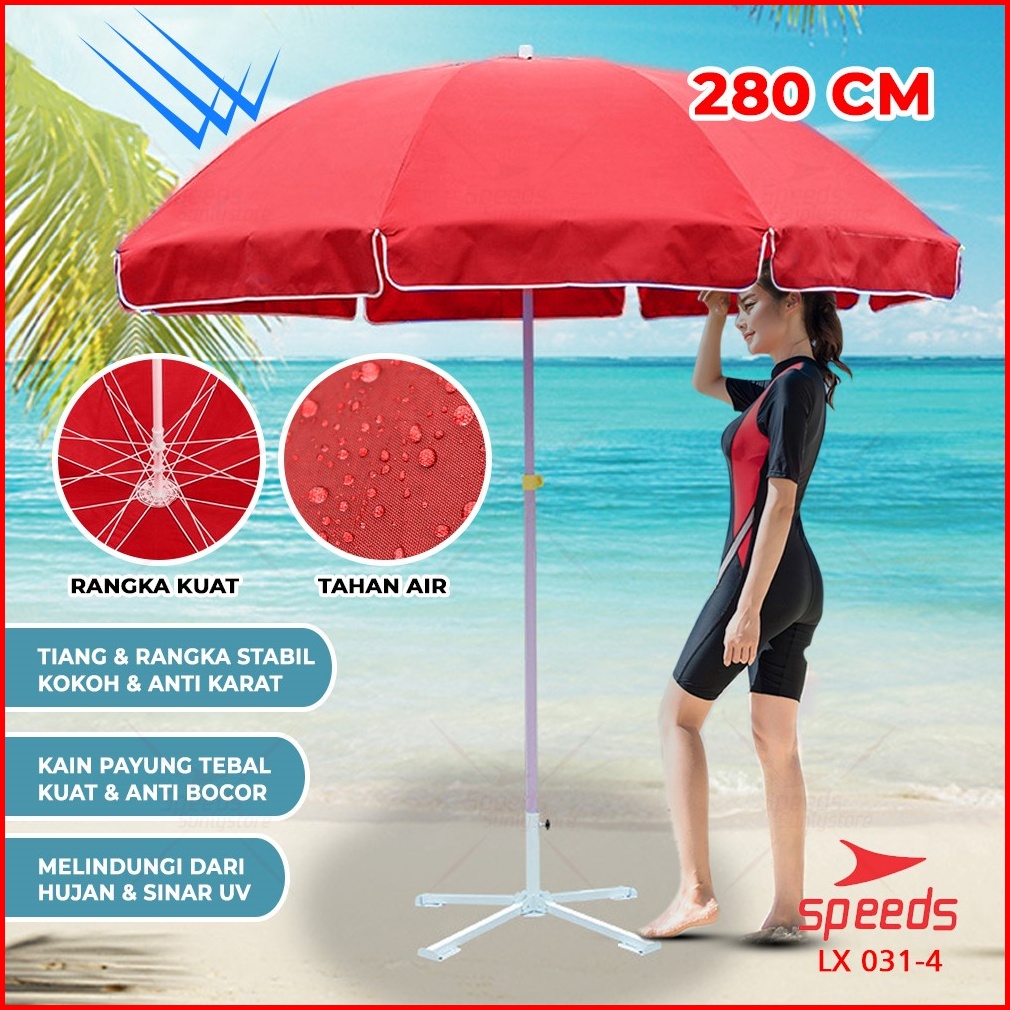 Speeds Payung Tenda Lebar 280cm Payung Pantai Cafe Bazaar Parasol Diameter Tenda Booth Jualan Import 031-4