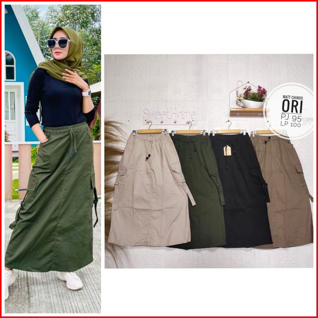 Rok Chinos Panjang Span By Khn Rok Span Rok Cargo Wanita