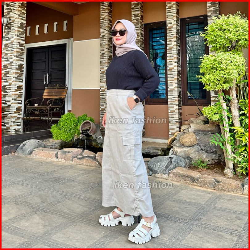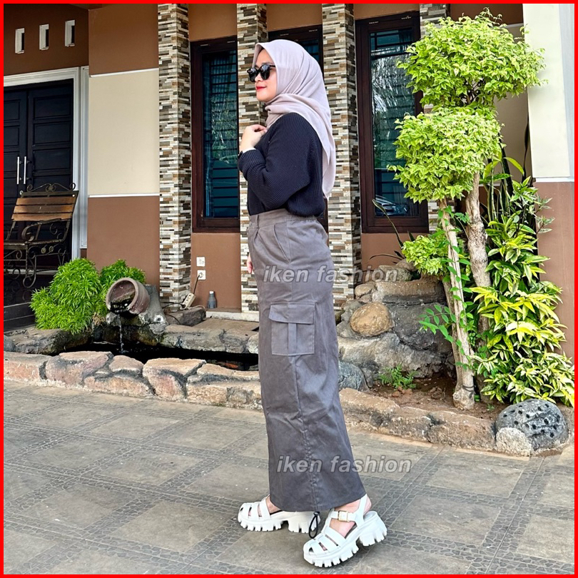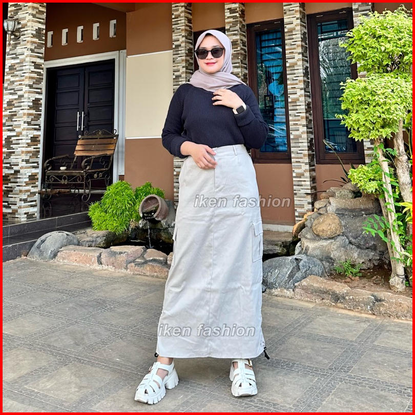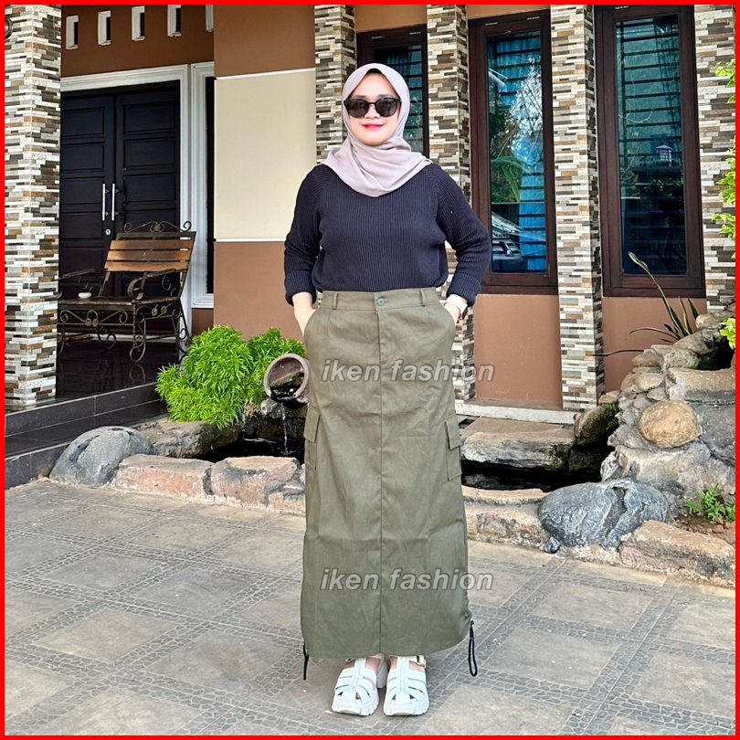 Cargo Skirt Wanita Rok Cargo Bahan Stretch