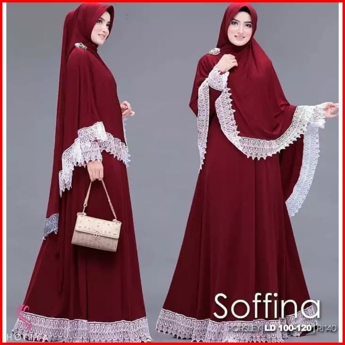 Soffina Syari Gamis Set Khimar Model Terbaru 2025 Dewasa Lebaran Jumbo Gamis Wanita Ibu Ibu Pengajian Kondangan Seragama