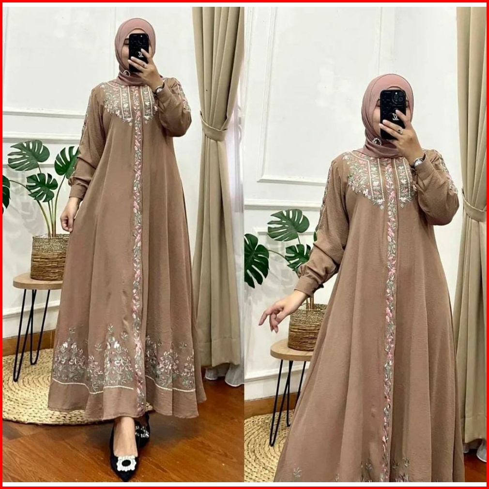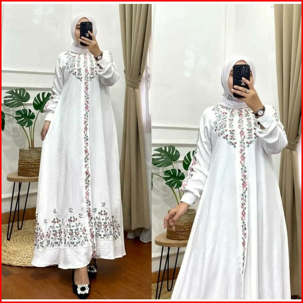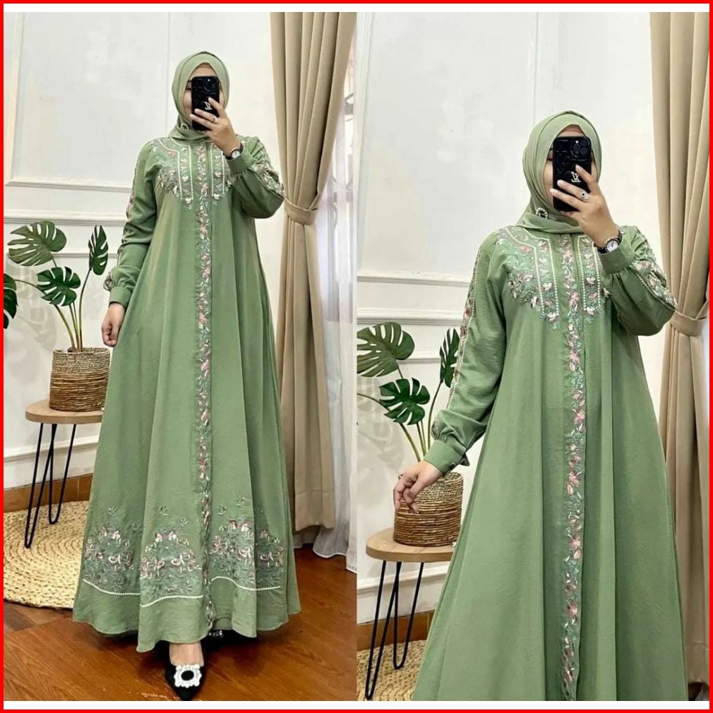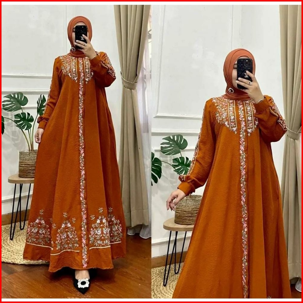 Gamis Bordir Terbaru Mewah Crinkle Airflow Jumbo Xxl Dress Bordir Wanita Premium Import Dress Bordir Jumbo Dress Muslim