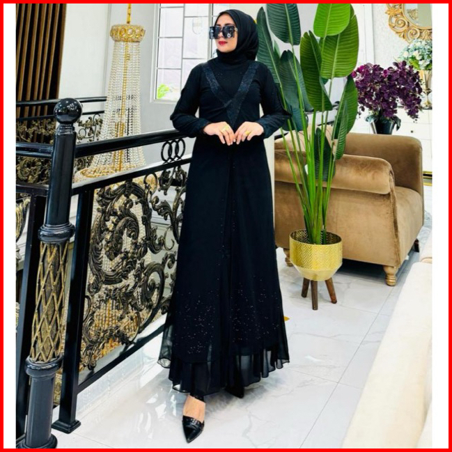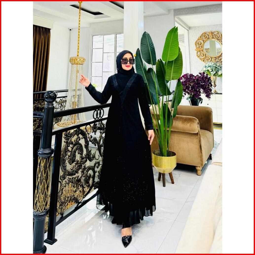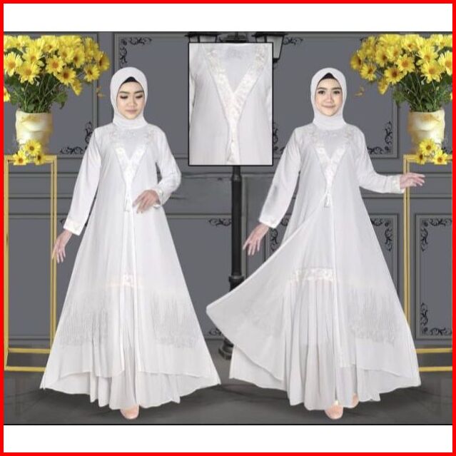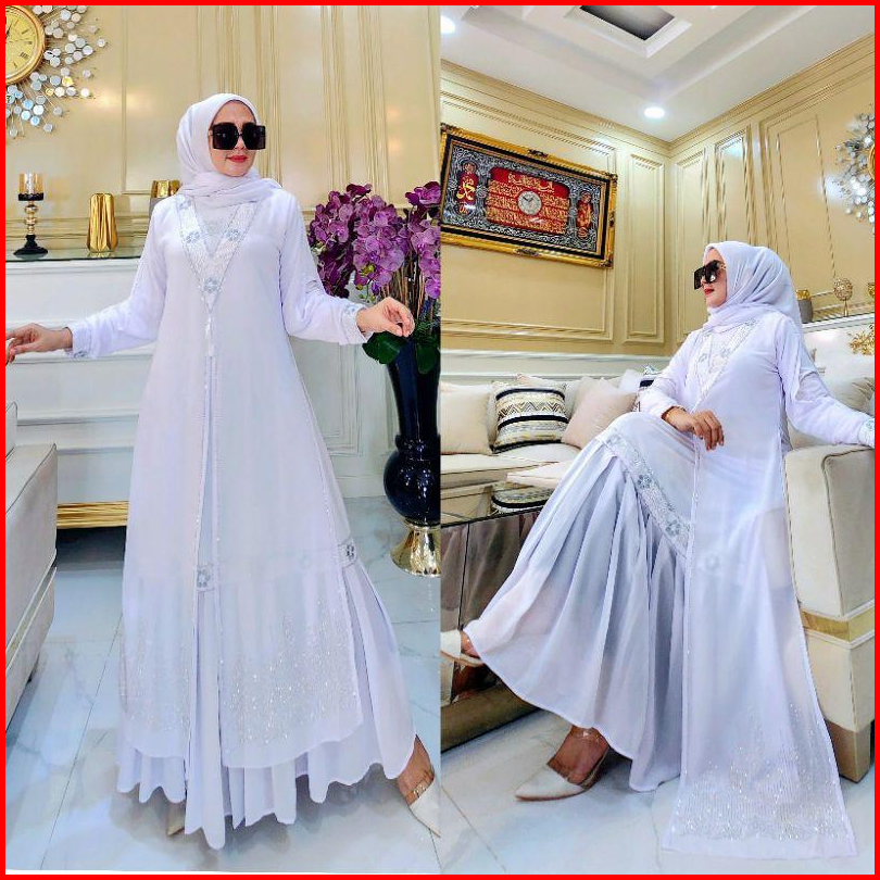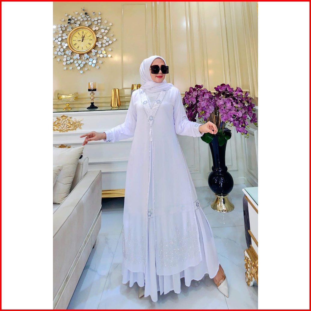 Abaya Arab Turkey Mikayla Putih Jambul Polos Gamis Abaya Jersey Bordir Mote Swarosky Mayung Ceruty Terbaru