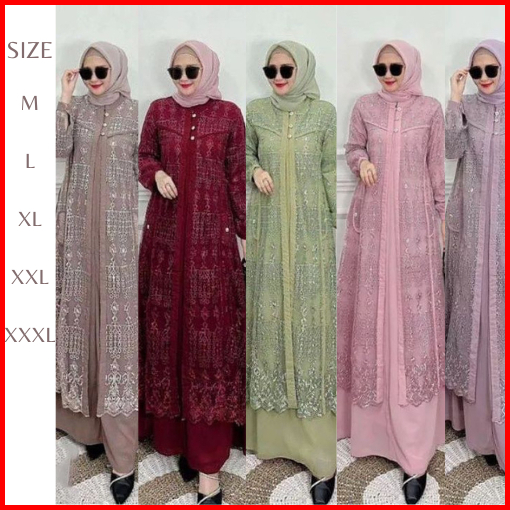 Gamis Brokat Full Payet Hayya Dress Bahan Ceruty Mix Brukat Size M L Xl Xxl Xxxl Ld 100 - 120 Cm Pakaian Wanita Baju Mus