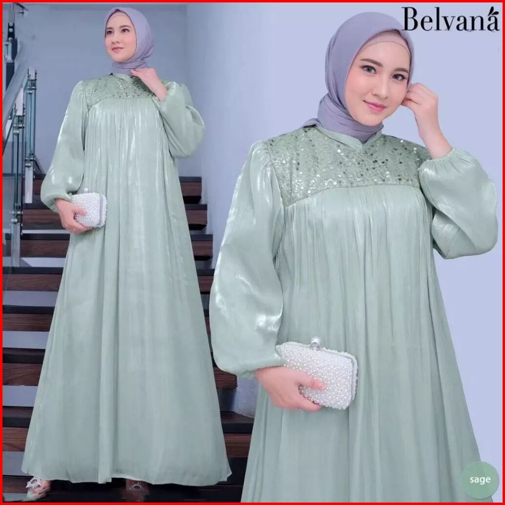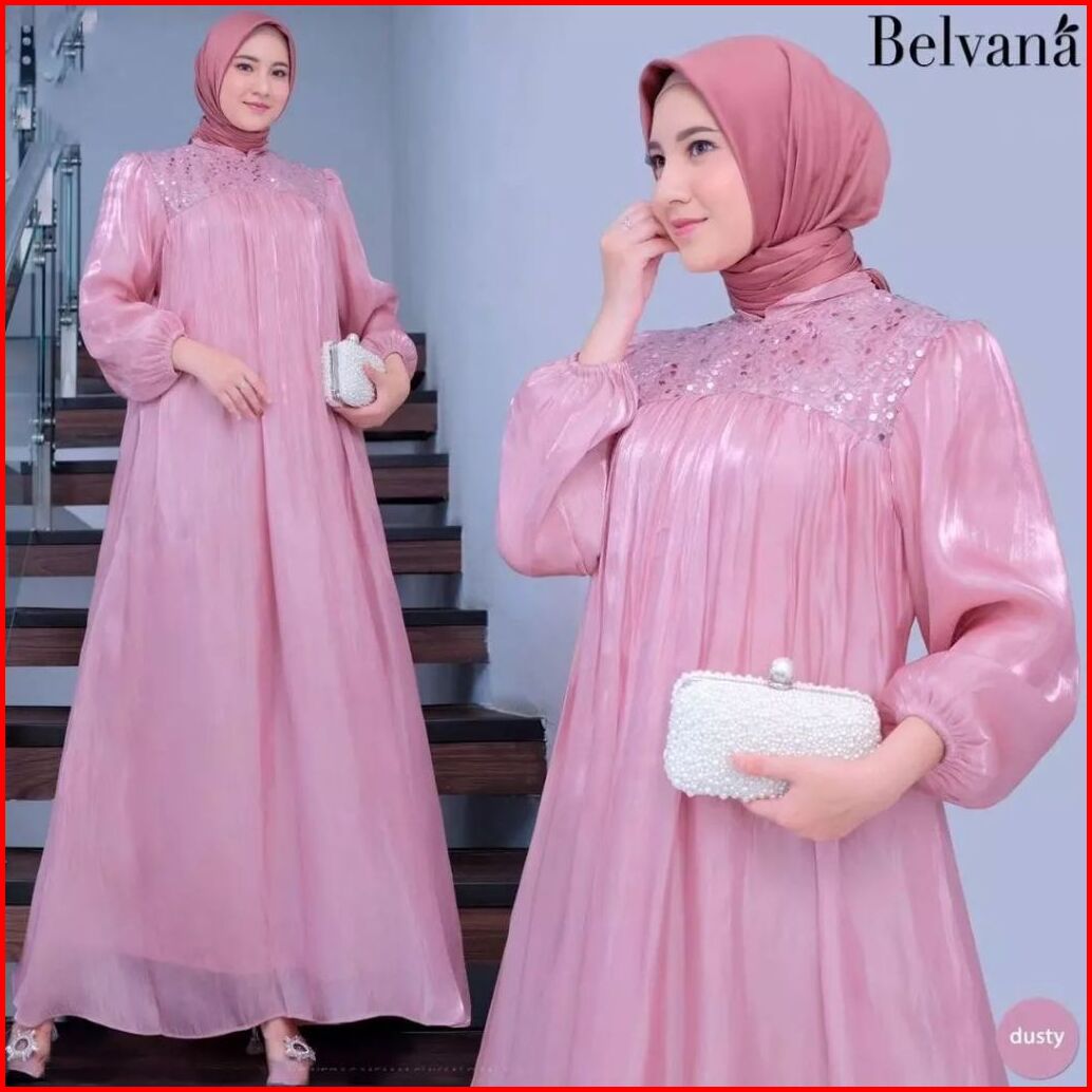 Belvana Dress Bahan Shimer Mix Tille Sequin Dress Kondangan Gamis Terbaru 2023 Lebaran Wanita Gaun Pesta Mewah Murah Elf