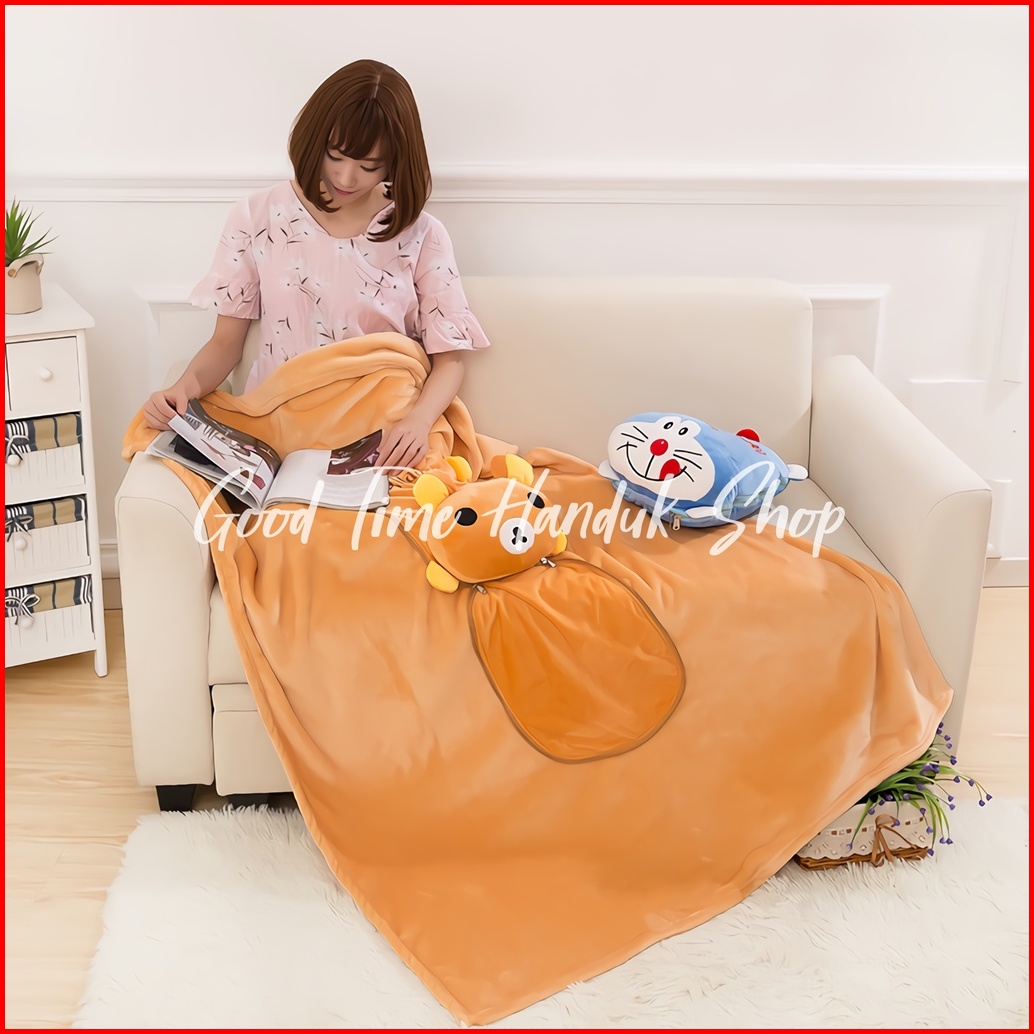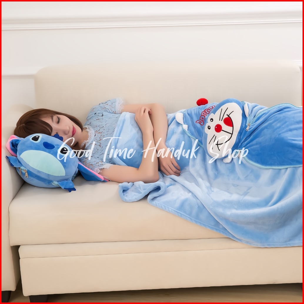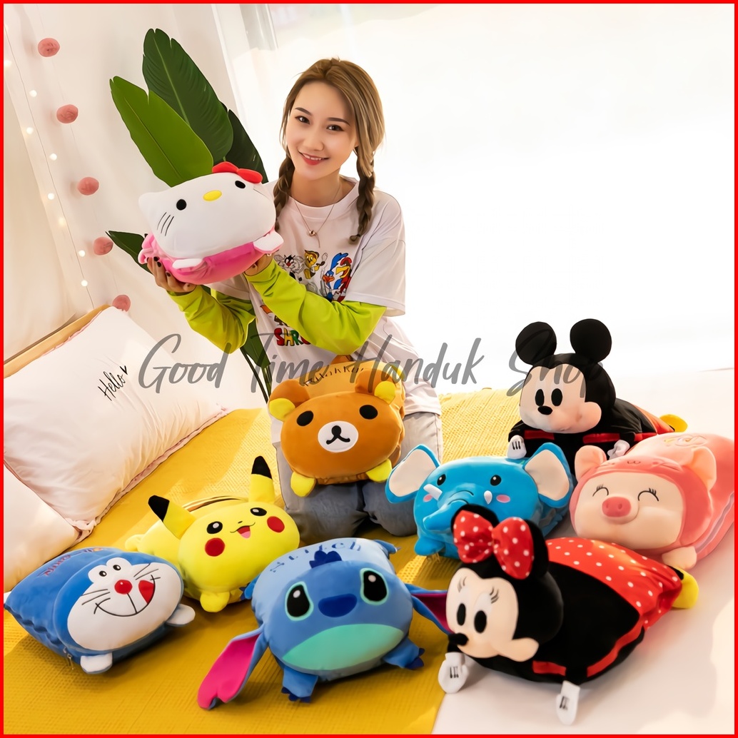 Bantal Selimut Balmut Karakter Kartun Doraemon Pikachu Rilakuma Stitch Totoro Hello Kitty 2 In 1 Lembut Ukuran 110 X 160