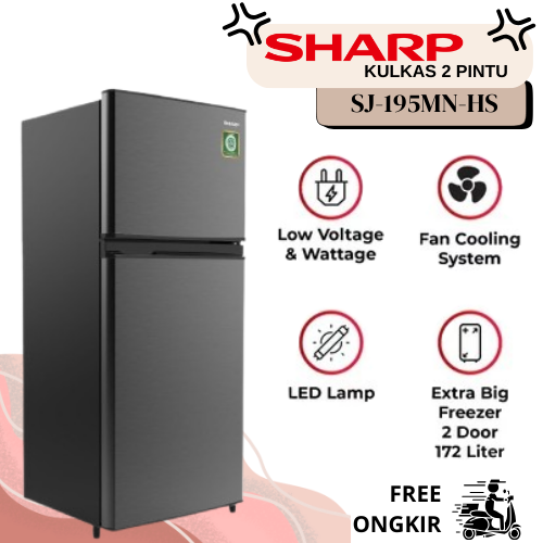 Kulkas 2 Pintu Sharp SJ 195MN-HS Kirei Series Kapasitas 172 Liter Jumbo Auto Defrost bukan Tanpa Bunga Es Tanpa DP