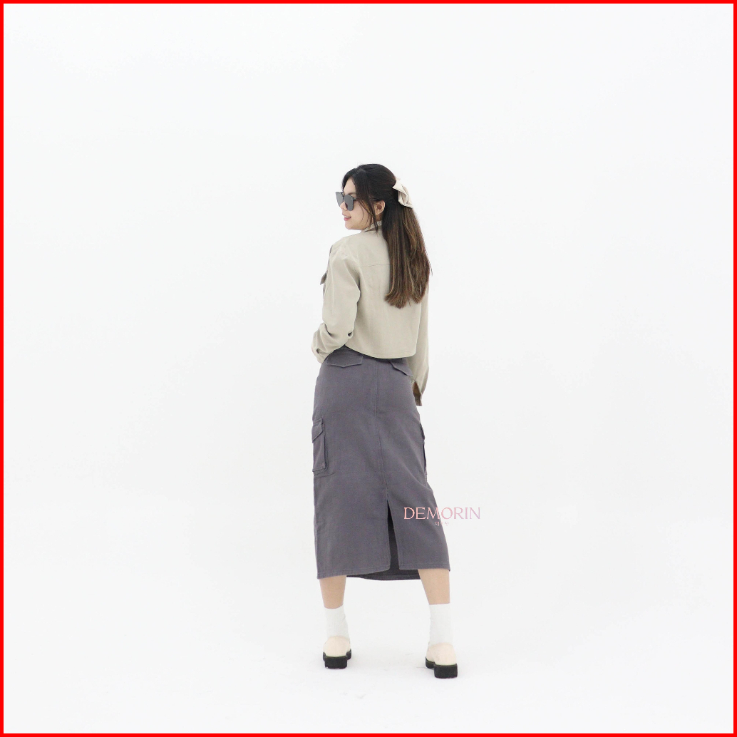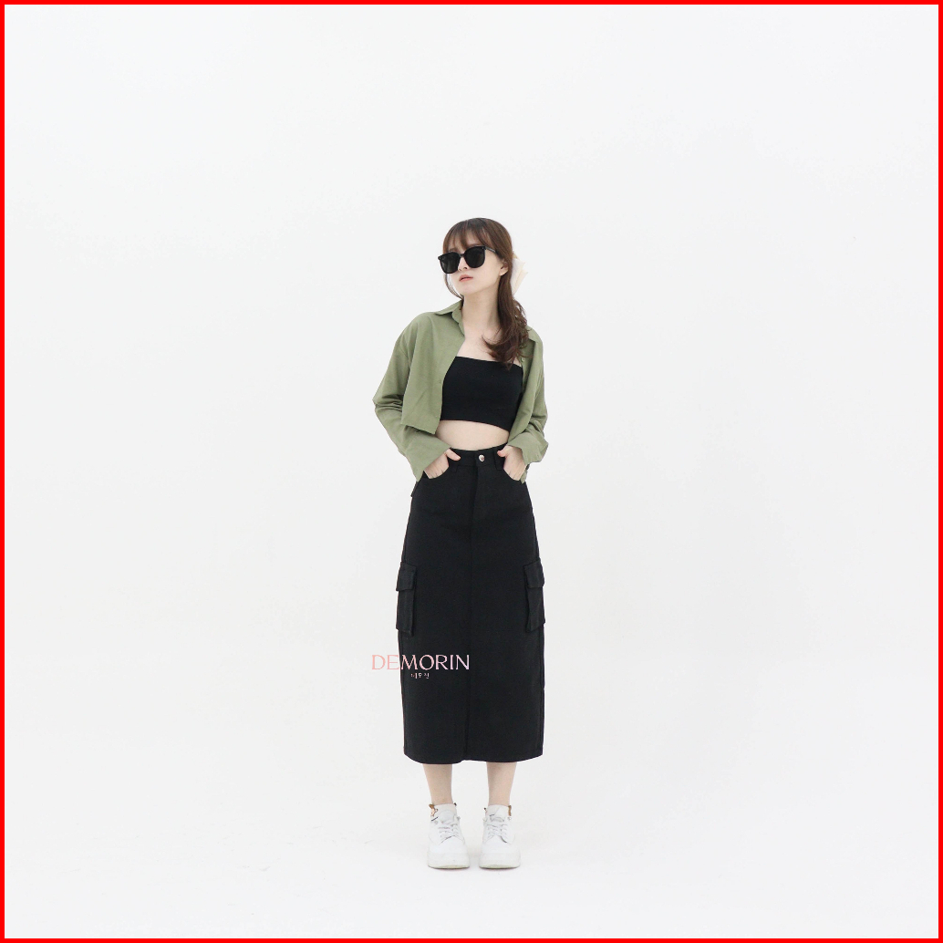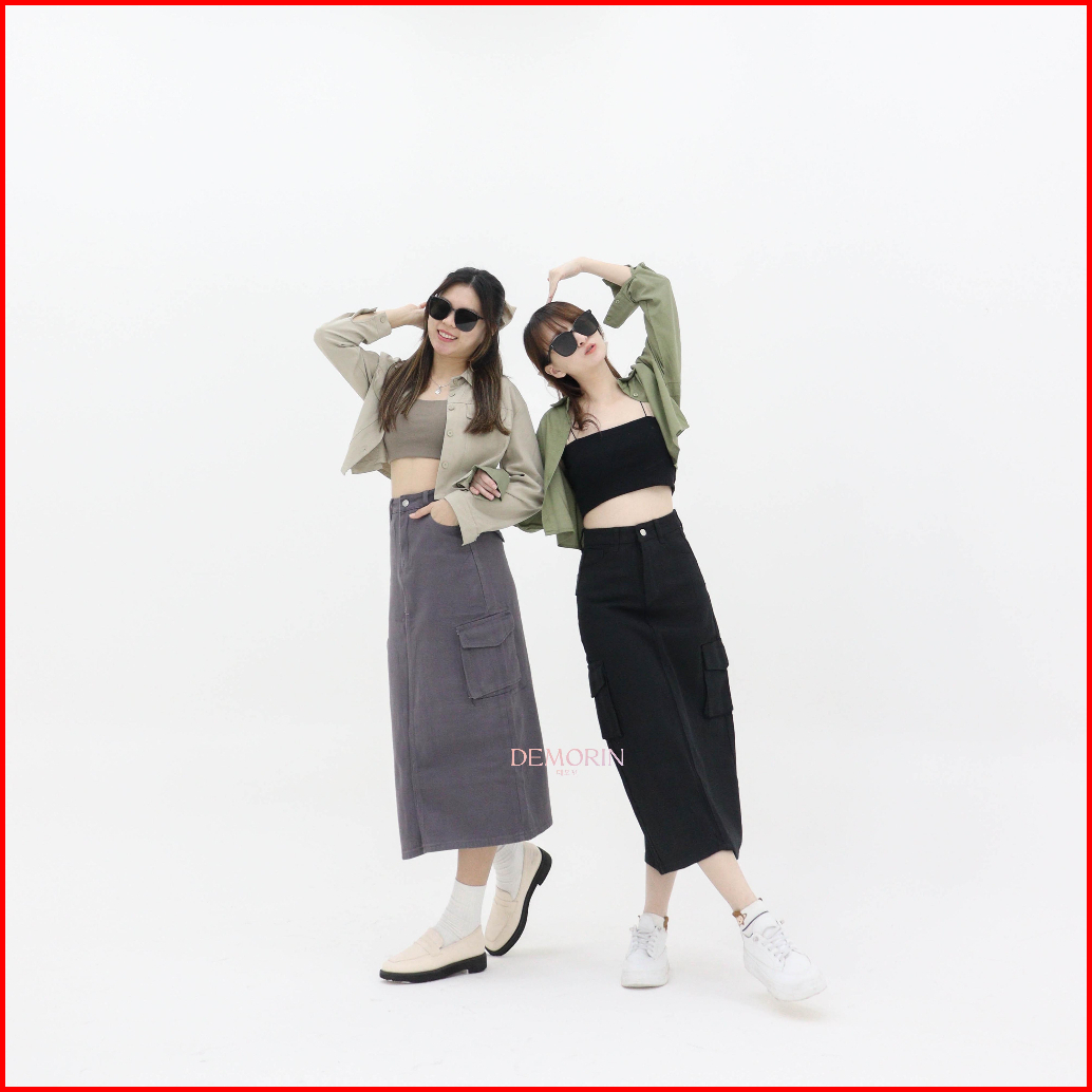 Demorin Midi Skirt Rok Jeans Wanita High Waist Rok Korea Jeans X10