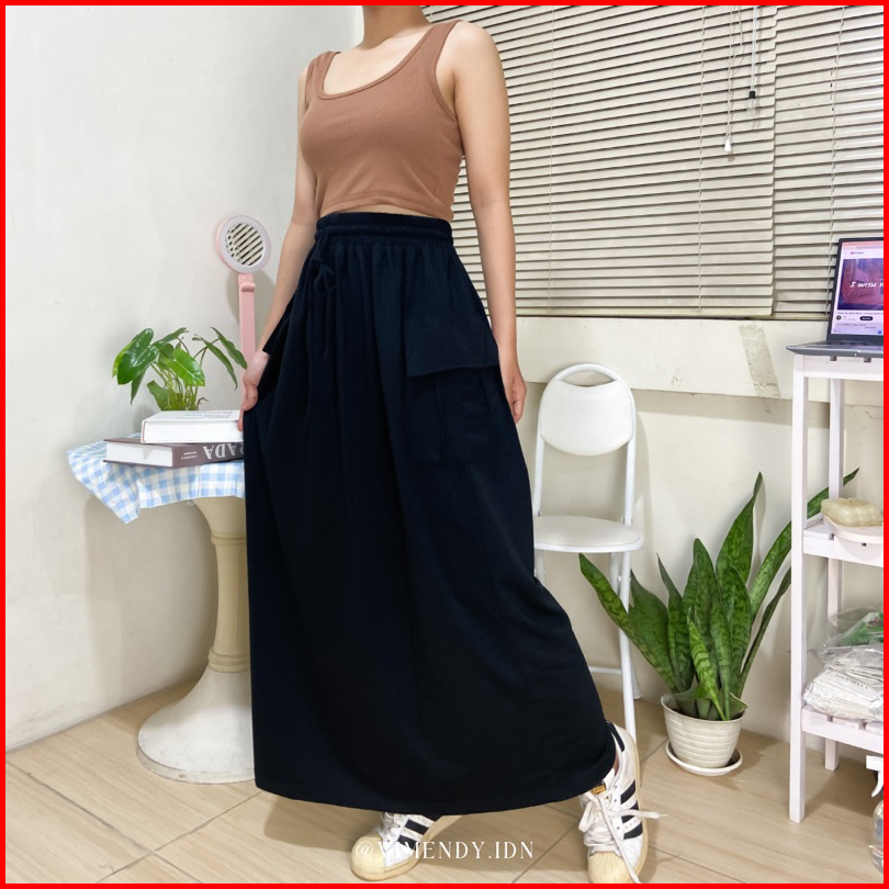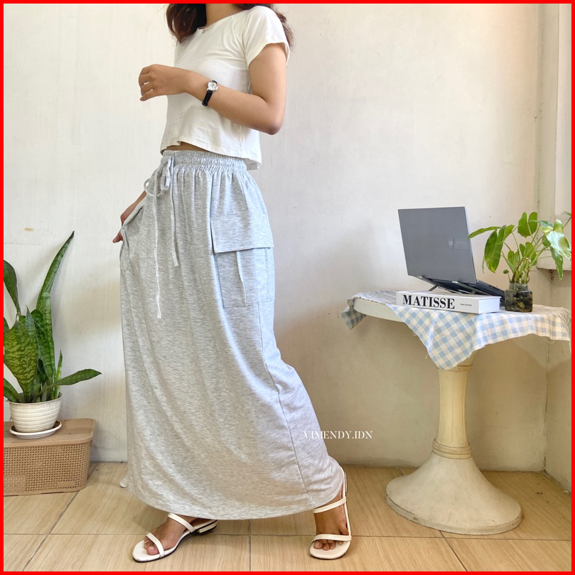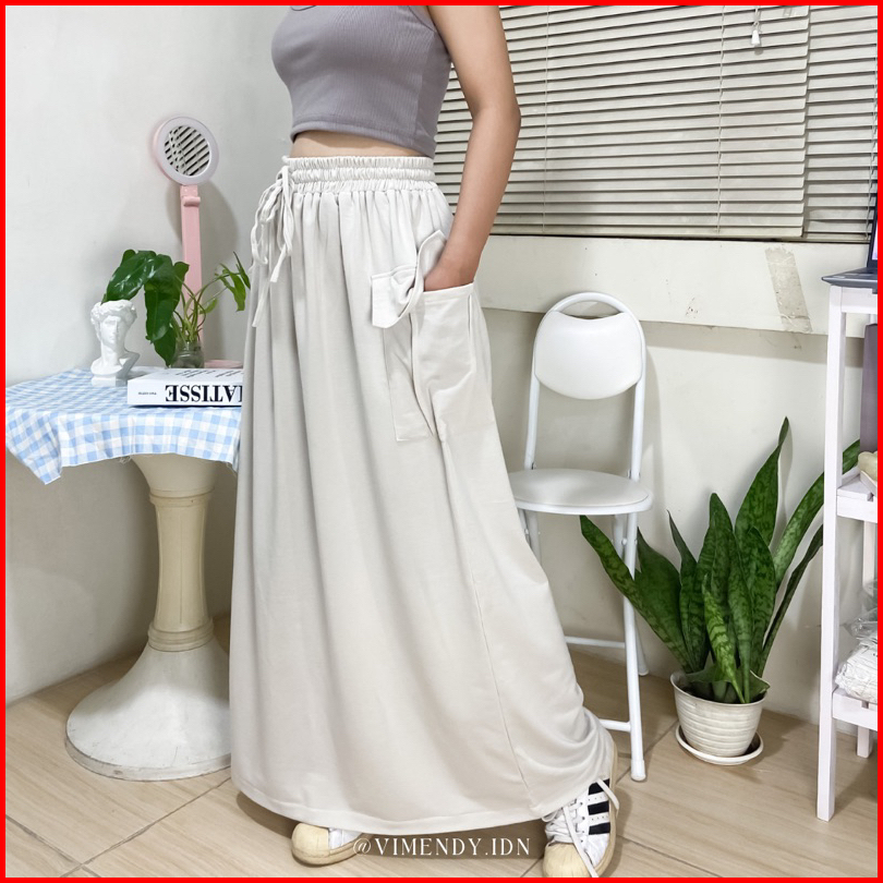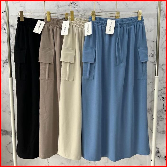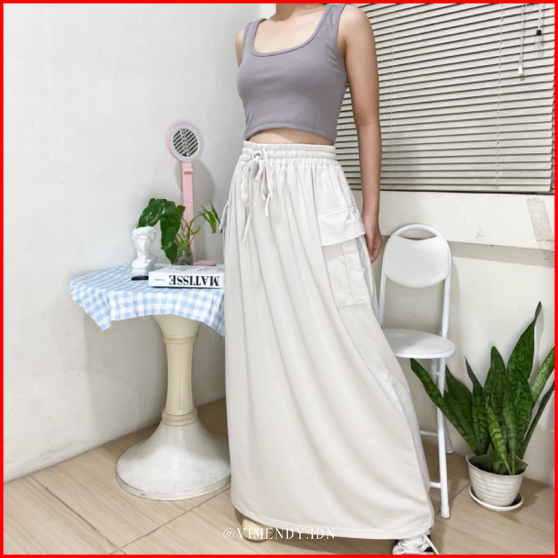 Ready Stock Cargo Skirt Baby Terry Vimendy Rok Kargo Maxi Jumbo Bigsize Rok Bumil Coklat Abu Brown Gray Beige Sand Black