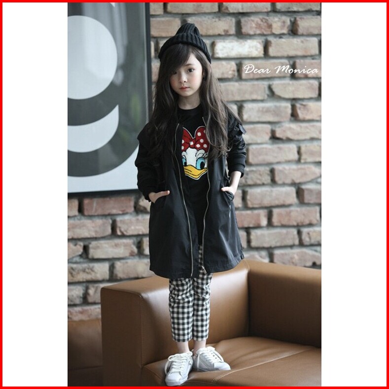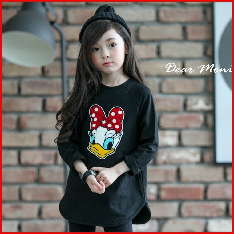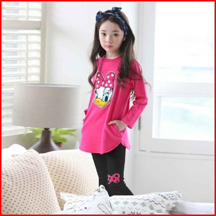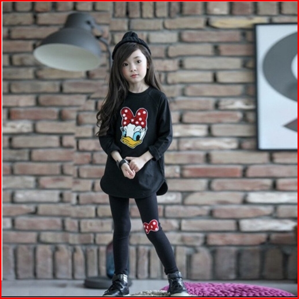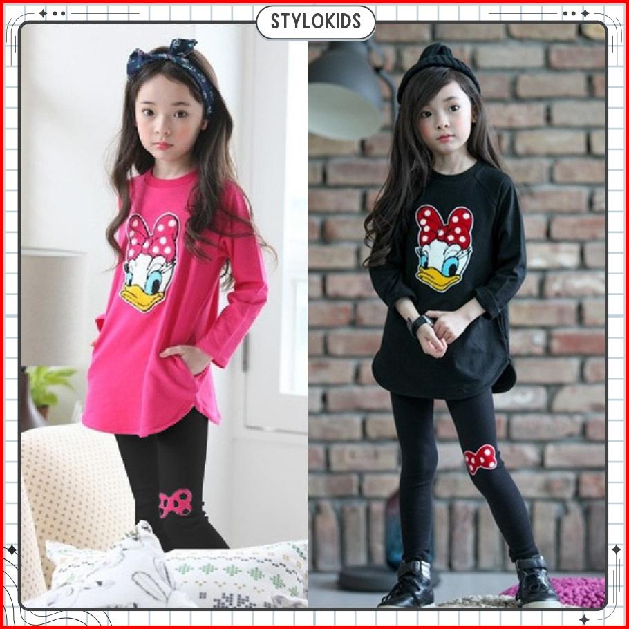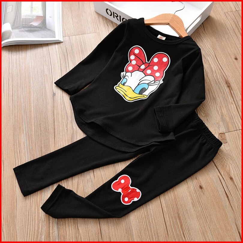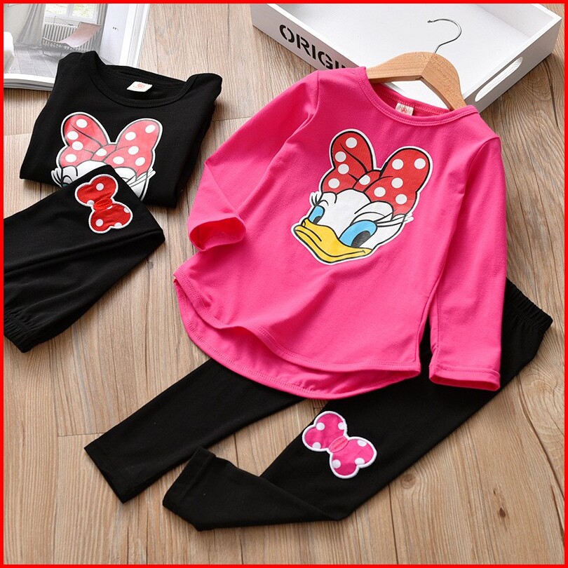 Stylokids Baju Setelan Kaos T-shirt Celana Panjang Anak Perempuan Gambar Daisy Duck Warna Hitam Dan Pink